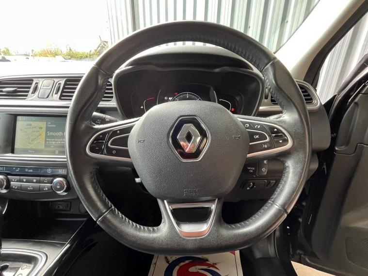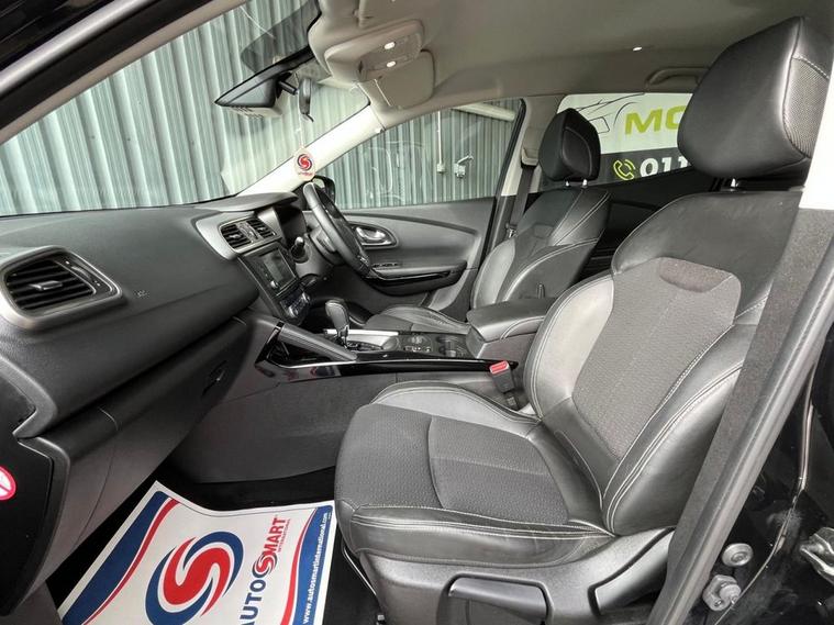 Moto Vation Car Sales are offering this Automatic Renault Kadjar in a desirable colour- Black with half Black leather interior. Low miles for the age- 89K and It is clear it has been loved by its 3 previous owners from new. Supplied with a long MOT until 09/01/27 and service History attached with 6 stamps- last in our Service Centre in 03/26! Many extras include a Multi Functional Steering Wheel, 19 Alloys, AUX, USB, Bluetooth, Parking Sensors, Auto Headlights, Keyless Entry, Keyless Go, Apple Car Play, Android Auto, Voice Control, Cruise Control, Isofix, Sat Nav, Push Button Start and Start Stop. Only £20 annual tax! Please confirm with a Sales Executive how many keys this car comes with. All of our vehicles come with a 3 months Nationwide warranty and a 12 months basic AA breakdown cover. Please read our reviews! Please note- the above vehicle specification is confirmed and correct. The vehicle specification listed elsewhere may sometimes be inaccurate so please check with the Sales team when enquiring to clarify this prior to purchase.