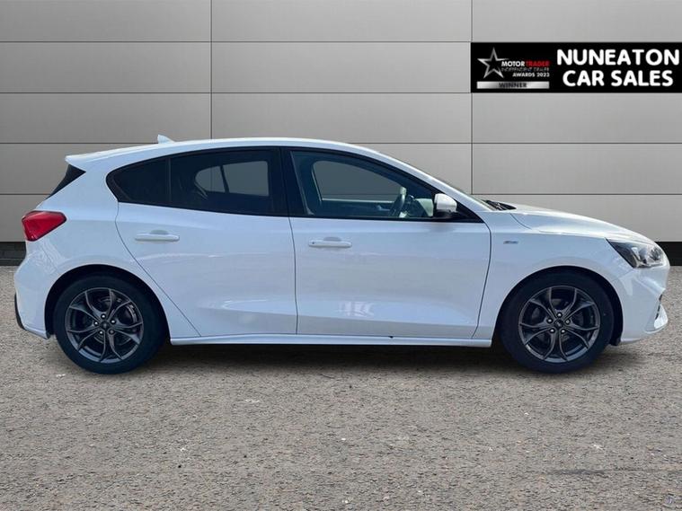 Ford Focus 1.0T EcoBoost ST-Line - Apple Car Play, Android Auto, Front & Rear Parking Sensors, Sat Nav - Part Service History This 2019 Ford Focus ST Line presents a superb ownership proposition, having been meticulously maintained by just one owner from new and boasting a clear vehicle history check. Under the bonnet, youll find a responsive 1.0 litre petrol engine, compliant with Euro 6 emissions standards, ensuring efficient performance. Inside, the ST Line trim offers a modern driving experience with manual air conditioning to keep you comfortable, and the Ford SYNC system featuring an 8 inch TFT touchscreen that seamlessly integrates with both Android Auto and Apple CarPlay for your connectivity needs. Automatic headlights that switch on and off as needed add to the convenience. The Ford Focus ST Line is designed to impress, and this particular model highlights its appeal with a brisk 0-60mph acceleration time of just 10.0 seconds, demonstrating its spirited performance. Furthermore, its low CO2 emissions indicate a more environmentally conscious choice compared to many other vehicles in its class. This combination of engaging driving dynamics, advanced technology, and economical operation makes this 2019 Ford Focus ST Line a compelling option. Combining comfort, performance and practicality, this model is perfect for drivers seeking sporty styling with everyday usability. Service History Part service history recorded as follows: 18/12/2020 @ 17962 miles (Ford) 20/06/2024 @ 48579 miles 14/07/2025 @ 59461 miles March 2026 Nuneaton Car Sales Key Features & Specification 17 Inch Alloy Wheels LED Daytime Running Lights Front and Rear Parking sensors Cruise Control Air Conditioning Satellite Navigation DAB Digital Radio Bluetooth Connectivity USB / Voice Control ISOFIX Child Seat Mounts Driver Assistance Features Start/Stop Technology Vehicle Information Registration: 31/03/2019 Mileage: 63172 miles Fuel Type: Petrol Transmission: 6 Speed Manual Owners: [1] HPI Status: Clear Why Buy From Nuneaton Car Sales? * Multi Award-Winning Dealership * AA Approved Dealer * NO ADMIN FEES * 12 Months AA Breakdown Cover * Multi-Point Vehicle Inspection * Free MOT if due within 6 months * Competitive Finance Available * Part Exchange Welcome * Click & Collect & Home Delivery Available * Same Day Drive Away on most vehicles Extra Peace of Mind Personalised walk-around videos available on request. All vehicles professionally prepared and valeted prior to sale. This vehicle is price-checked daily against the UK market to ensure excellent value. Every effort is made to ensure vehicle information is accurate. Specification data may be supplied by a third-party source. If a particular feature is important to your purchase decision, please contact our sales team who will be happy to confirm.