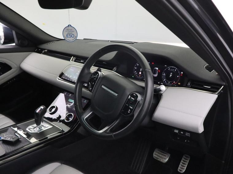With 45, 000 miles, this Land Rover Range Rover Evoque 2.0 D180 MHEV R-Dynamic SE SUV is a premium luxury compact SUV that combines striking design, advanced technology and strong diesel performance. Finished in grey, this Range Rover Evoque R-Dynamic SE is powered by the efficient 2.0-litre D180 mild-hybrid diesel engine producing 180 PS, paired with a smooth automatic transmission and intelligent 4WD system. The mild-hybrid technology helps improve efficiency while maintaining strong performance, making this Euro 6 compliant Evoque an excellent choice for both city driving and longer journeys. Inside, the Range Rover Evoque R-Dynamic SE offers a refined and luxurious interior with a range of modern comfort and connectivity features. Apple CarPlay and Android Auto provide seamless smartphone integration, allowing easy access to navigation, calls and music through the infotainment system. The rear view camera helps make parking and manoeuvring easier, while ambient interior lighting enhances the cabin atmosphere for a more premium driving experience. Comfort is also a priority, with 14-way heated electric memory front seats that allow you to find your perfect driving position while ensuring warmth during colder months. The Land Rover Range Rover Evoque D180 R-Dynamic SE is widely recognised for its combination of luxury, advanced technology and all-terrain capability, making it one of the most desirable premium compact SUVs on the market. With its stylish design, strong diesel efficiency and impressive specification, this used Range Rover Evoque SUV represents a fantastic opportunity for anyone looking for a well-equipped, luxury Land Rover with four-wheel drive capability and modern connectivity features.