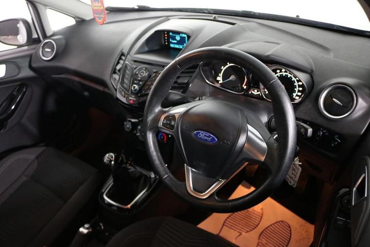 AWB Motors are pleased to present this stunning Ford Fiesta finished in Moondust Silver complemented by ALLOY WHEELS and Front Fog Lights. Make your calls handsfree using the BLUETOOTH Interface. Charge your phone using the USB Port. Perfect for listening to your favourite music either from your phone through the AUX Port or simply using the DAB Radio. These alongside all other radio functions can be controlled using the Multifunction Steering Wheel. Drive in comfort whatever the weather with both AIR CONDITIONING and QuickClear HEATED WINDSCREEN. Safe for your children with ISOFIX Anchorage Points. Other useful ancillaries include Electric Windows, Electric Mirrors and Remote Central Locking. Buy with confidence as its has had just 2 OWNERS From New. Maintained very well with 8 Stamp SERVICE HISTORY. Cheap to run being £35 TAX, LOW INSURANCE GROUP and thanks to its Fuel Efficient Engine achieving 55+MPG. 2 KEYS Supplied.
