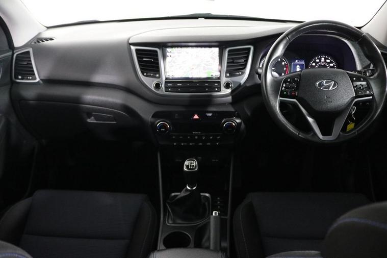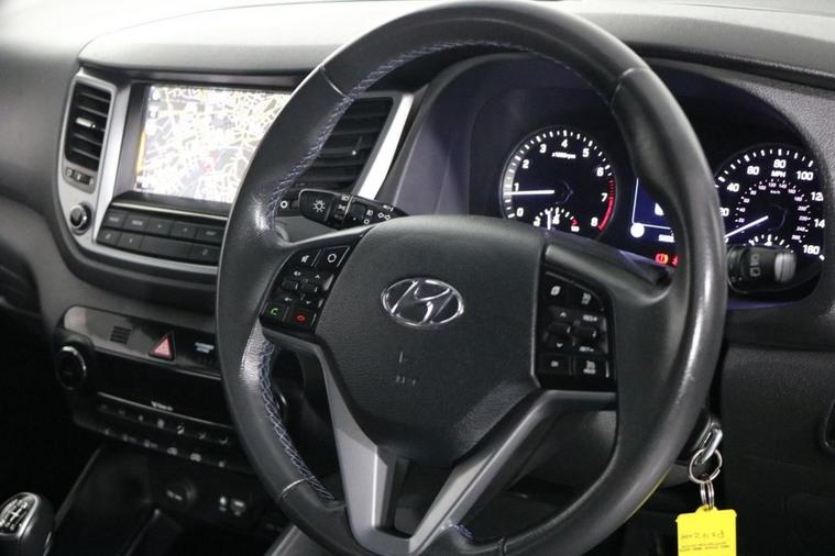 This well maintained Hyundai Tucson SE Nav edition finished in Phantom Black looks fantastic complemented by 17 inch Alloy Wheels and LED Running Lights. Find your way with integrated SATELLITE NAVIGATION with TOUCHSCREEN Display. Park in ease with REVERSE CAMERA and REAR PARKING SENSORS. Sit in luxury with HEATED FRONT SEATS. Keep connected with BLUETOOTH Phone System with USB port. Listen to your music through DAB Digital Radio. Comfortable to drive with Dual-Zone CLIMATE CONTROLLED AIR CONDITIONING and CRUISE CONTROL with Speed Limiting Function. Safe to journey with Speed Limit Information, Brake Assist and Lane Departure Warning. Well equipped with Power-Fold Door Mirrors, Auto Headlights and Rain-Activated Wipers. Also fitted with ISOFIX seats, Multifunctional Steering Wheel, AUX port, Immobiliser, Alarm and Remote Door Locking with 2 x keys. Buy in confidence with JUST 2 OWNERS from new and SERVICE HISTORY with 6 x Documented Services.