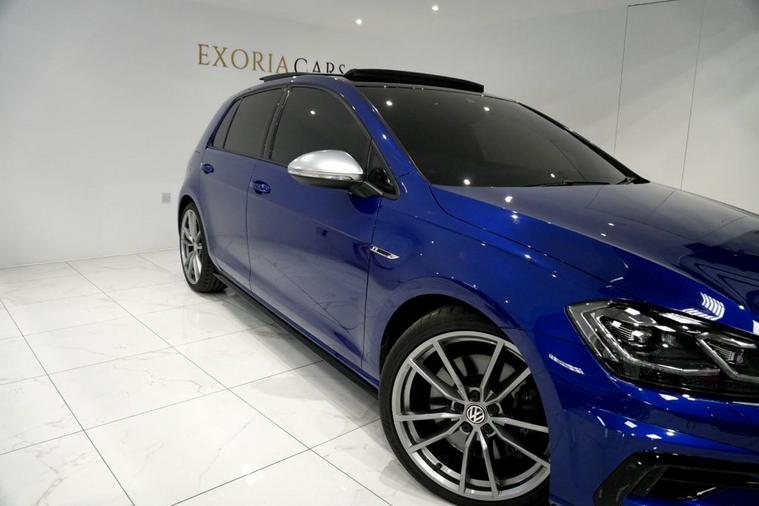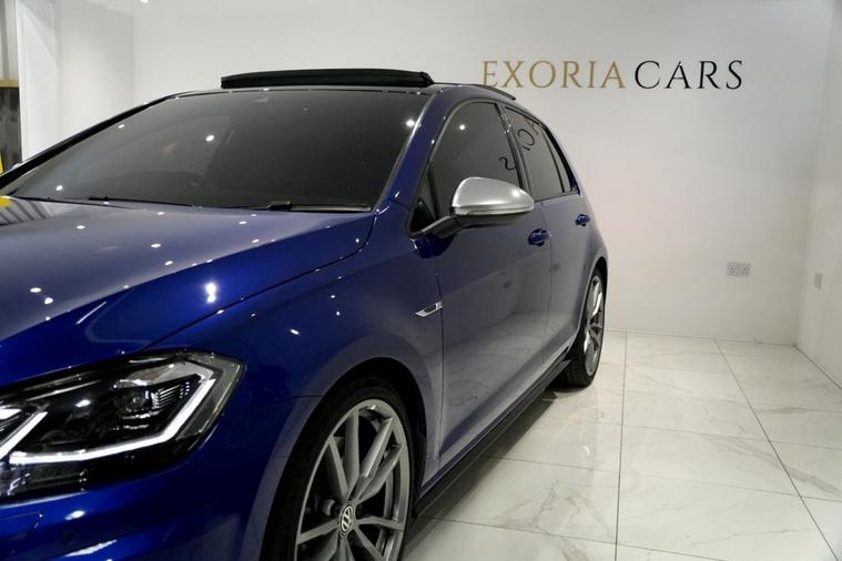 Exoria Cars are pleased to offer this VOLKSWAGEN GOLF 2.0 TSI R Hatchback 5dr Petrol DSG 4Motion Euro 6 (s/s) (300 ps) registered on the 08/03/2019. This particular model is presented in Lapiz Blue featuring 19in Alloy Wheels - Pretoria. This vehicle has many optional spec extras. These include (but are not limited to) Panoramic Sunroof, Akrapovic Titanium Sport Exhaust System, Dynaudio Excite Soundpack, DCC (Dynamic Chassis Control, ) Rear View Camera, Adaptive Cruise Control, Rear Tinted Glass, Apple Car Play/Android Auto, active safety features and much more. For full details please do enquire via email or phone. This vehicle comes with 2 keys, Ghost Immobiliser And Tracker, a full (clear) HPI check, 12 months MOT, FULL VW MAIN DEALER SERVICE HISTORY. 2 Owners. All 5* reviews on all platforms giving you peace of mind with your new purchase! AA Checks/RAC Checks are welcome! All of our vehicles are thoroughly inspected before sale ensuring peace of mind to all customers of Exoria Cars. Any used car purchase also qualifies for a free interior and exterior deep clean detail worth £400 with our partnered company DD Detailing who are one of the largest detailing companies in the UK. This vehicle is ready to drive away today! PCP & HP finance available from 8.9% APR (subject to status).