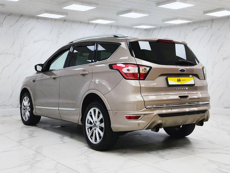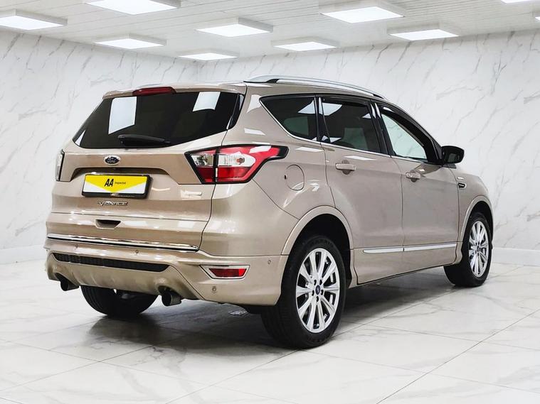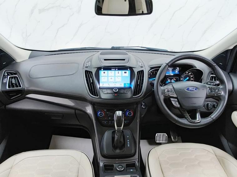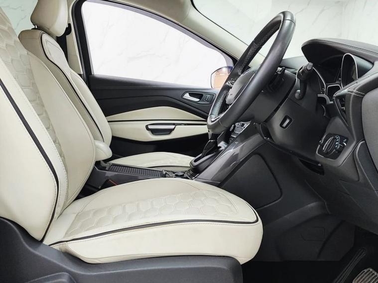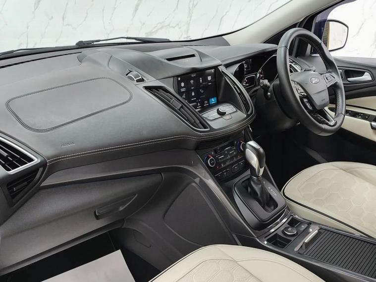 This 2017 Ford Kuga T Vignale offers exceptional peace of mind with its MOT valid all the way until February 2027. This Four Wheel Drive model is powered by a 1.5 litre petrol engine and meets Euro 6 emissions standards. It comes equipped with automatic headlights that turn on by themselves, and DEATC dual zone electronic automatic temperature control for personalised comfort. Parking is made easier with a rear view camera, and the drivers seat offers 10 way power adjustment with memory settings. Access is convenient thanks to keyless entry and a hands free power tailgate. The Vignale trim level signifies a premium experience, and this Kuga showcases that with its advanced features. The power adjustable drivers seat with memory ensures your preferred driving position is always ready, while the hands free power tailgate adds a touch of sophistication and practicality. These elements, combined with the advanced climate control and parking assistance, demonstrate how this Ford Kuga Vignale provides a more refined and convenient ownership experience compared to other vehicles in its class.