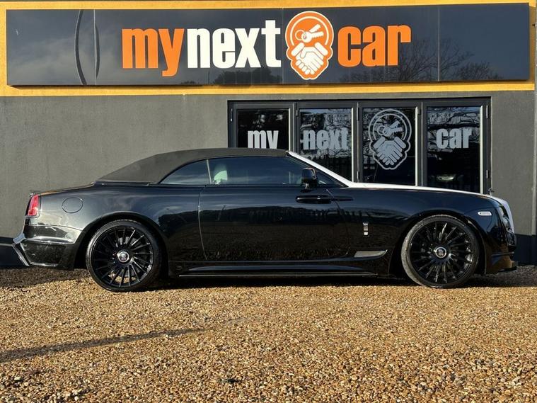 Discover this exceptional 2017 Rolls-Royce Dawn V12, boasting an incredibly low mileage of just 15000 miles, a true testament to its careful ownership. This magnificent vehicle is powered by a robust 6.6-litre petrol engine, meeting Euro 6 emission standards, and features a sophisticated interior with heated front and rear seats for ultimate comfort. Enjoy seamless connectivity with Bluetooth for your phone and effortless parking, thanks to front parking sensors. The automatic headlights ensure optimal visibility, adapting to changing light conditions., Experience exhilarating performance with the Dawns impressive 0-60mph acceleration in just 4.8 seconds, a figure that places it ahead of many comparable vehicles. This remarkable speed, combined with the refined V12 engine, offers a driving experience that is both powerful and supremely smooth. With its MOT, valid until November 2026, this Rolls-Royce Dawn represents a unique opportunity to own a vehicle that blends unparalleled luxury with exhilarating performance and exceptional provenance., We are proud to introduce for sale this simply stunning Rolls-Royce Dawn that benefits from a full exterior design package by Onyx Concept. SUPPLIED BY ROLLS-ROYCE SUNNINGDALE. Full details the Onyx conversion are, outlined here: Complete Front Bumper With Carbon Fibre Lower Splitter And LED Daytime Running Lights With Carbon Fibre Housings, Sculpted, And Vented Side Sills With Extended Carbon Fibre Element, Complete Rear Bumper With Carbon Fibre Diffuser Housing Branded Billet Aluminium, Tailpipes, Full Exterior De-Chrome To Front Grille, Spirit Of Ecstasy, Door Handles, Window Surrounds, Taillight Trim And Boot Finisher, 22, Forged Roulette Alloy Wheels With Polished Face Spokes, Lowering Program, Sport Exhaust, and Exterior Branding. Complementing the Onyx, enhancements is a comprehensive Rolls-Royce specification which can be found here: Driver Assistance Systems 3 that include Head Up, Display, High Beam Assist, Lane Departure Warning, Night Vision And Active Cruise Control, Park Distance Control With Rear, Side, and Top View, Camera System, Cruise Control, Hill Hold Function, Power Boot, Keyless Entry With Soft Close Doors, Dark Brushed Metal Facia Veneers, Black, Upholstery, RR Monogram To All Headrests, Seat Piping, Heated Front And Rear Seats, Ventilated Front Seats With Massage Function, 4 Zone, Climate Control, Satellite Navigation, Bluetooth Wireless Technology, Voice Recognition And Vehicle Tracking System