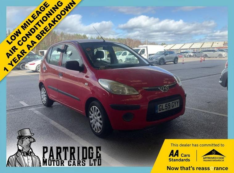 HPI CLEAR, 8 PREVIOUS SERVICES, SUPPLIED WITH NEW MOT, SUPPLIED WITH NEW SERVICE, AIR CONDITIONING, LOW MILEAGE, ELECTRIC WINDOWS, 5 DOORS, MANUAL, 3 MONTHS WARRANTY, 1 YEAR AA BREAKDOWN, AA DEALER **2009 Hyundai i10 1.2 Classic: 8 Services! Low Mileage, New MOT! AA Approved!** ******** A fantastic, exceptionally well-maintained example of the incredibly practical and reliable city car! This is the 2009 Hyundai i10 in the dependable Classic specification, finished in the vibrant and eye-catching **Electric Red**. This vehicle boasts a superb maintenance record with **8 Previous Services**, proving it has been mechanically cherished. Combined with its **Low Mileage**, this i10 feels remarkably fresh and drives superbly. The Classic trim offers everything you need for comfortable daily driving, including the highly sought-after practical addition of **Air Conditioning**. With its spacious **5-Door** layout and surprisingly roomy cabin, it is the perfect versatile daily commuter or first car. Powered by the proven **1.2L petrol engine**, it delivers legendary reliability, excellent fuel economy, and highly manageable running costs. ******** **Key Features:** *** **Excellent Service History**: 8 recorded services plus a fresh one from ussuperb maintenance peace of mind. *** **Low Mileage**: A lightly used example that feels tight and responsive on the road. *** **Classic Specification**: A highly reliable trim level focusing on durable, essential features. *** **Air Conditioning**: Essential for keeping the cabin cool and comfortable all year round. *** **Electric Red Paintwork**: A vibrant, bright finish that perfectly suits the i10s compact lines. *** **1.2L Petrol Engine**: A robust and efficient 4-cylinder engine perfect for town driving and longer trips. *** **5-Door Practicality**: Maximum convenience for rear passengers, child seats, or loading shopping. *** **Electric Windows**: Front electric windows for everyday convenience. ******** **Buy with Confidence:** *** **HPI Clear**: Verified history check. *** **Supplied with a New Service**: Freshly prepared by our expert mechanics. *** **Supplied with a New MOT**: A full 12-month certificate for the new owner. *** **3 Months Warranty**: Comprehensive cover included for reassurance. *** **1 Year Breakdown Cover**: Nationwide AA assistance included. *** **AA Approved Dealer**: Inspected to exacting AA standards. ******** **Partridge Motor Cars - Your Trusted AA Dealer:** We are 5-star rated for a reason! Every vehicle undergoes a meticulous inspection to meet our high expectations. ******** **Interested?** *** Call **01403485928** or visit * dealer's website to book a viewing. *** Finance Available: Flexible options to drive away today. *** Part Exchange Welcome: Trade in your old car for a great deal.