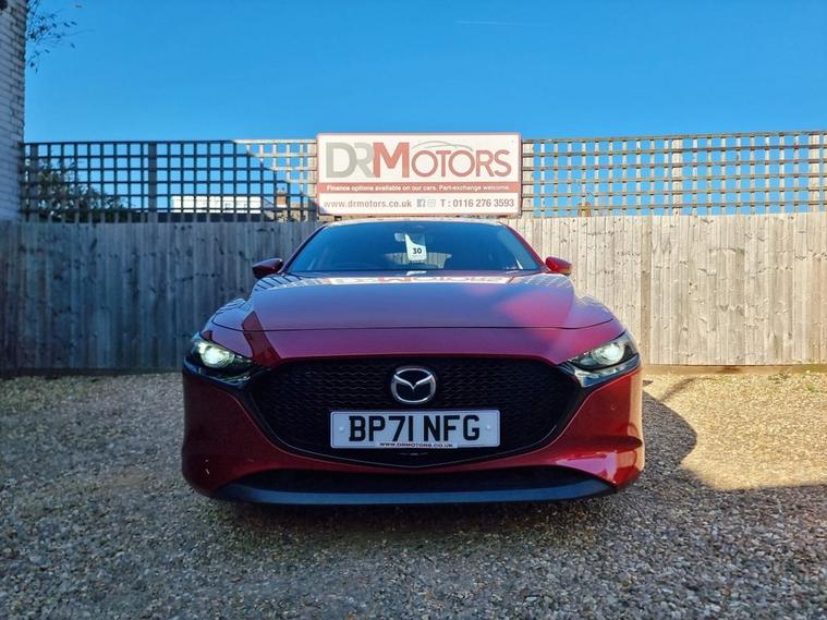 APRIL SPECIAL OFFER 18 MONTHS NATIONWIDE GOLD WARRANTY INCLUDED IN THE PRICE This Mazda3 2.0 e-SKYACTIV-G MHEV Sport Lux Hatchback is a superb example with just one owner from new and is ULEZ compliant. It is presented in excellent condition both inside and out, and the first to see it will surely want to drive it away. The car comes with two keys, a full service history with three recorded services, and a long MOT valid until March 2027, giving you complete peace of mind. The vehicle is packed with desirable features including built-in satellite navigation, a rear parking camera, front and rear parking sensors, heated seats, Bluetooth handsfree connectivity, cruise control, DAB radio, and USB/AUX connections. It also benefits from stylish 18-inch alloy wheels, privacy glass, and a practical five-door layout with generous boot space. Combining impressive fuel efficiency with low running costs, this Mazda3 offers both comfort and economy, finished in a lovely colour combination that really stands out. This car represents excellent value for money and finance options are availableplease get in touch to discuss what we can offer. We currently have over 150 DR Approved used cars in stock and are proud to have been awarded CarGurus Top Rated Dealer for 2020, 2021, and 2022. Debit cards are accepted, and you can pay and drive away the same day. All vehicles are Experian HPI clear, and part exchange is welcome. Please note that every vehicle is subject to an additional £149 administration fee. You can also upgrade your warranty to a 1-year Gold cover for £399 or a 2-year Gold cover for £599. Viewings are by appointment only, so please call our Sales Manager Jason on 01163432804 at any time, day or night, to arrange a viewing or secure the vehicle with a deposit. For more information and finance options, visit our website at dealer's website . At DR Motors, we are proud to be a Trading Standards Approved Garage and an AA Approved Dealer, reflecting our commitment to quality, integrity, and customer satisfaction. Every car also includes 12 months of free AA breakdown cover. While every effort has been made to ensure accuracy, please confirm key details with a member of our team before purchase.