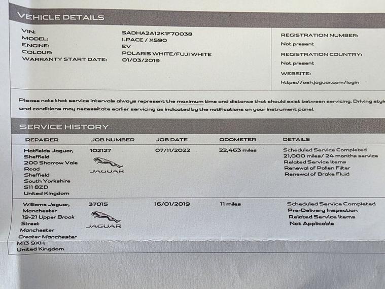 This 2019 Jaguar I-PACE 400 S boasts a clear vehicle history, offering peace of mind alongside its premium electric performance. As an all electric, four wheel drive vehicle, it features a substantial 90 kWh battery, providing a maximum range of 292 miles when new. The S trim level includes desirable features such as a Meridian Sound System, 2 Zone Climate Control, and a Cold Climate Pack with a heated steering wheel. Convenience is further enhanced with Keyless Entry and a comprehensive Park Pack, complete with front and rear parking sensors. The Jaguar I-PACE 400 S demonstrates impressive capability, with a rapid 0-60mph acceleration time of just 4.5 seconds, indicating a more dynamic driving experience compared to many similar vehicles. Charging is also efficient, with a full charge from empty taking approximately 12 hours and 36 minutes on a 7kW home charger, while public rapid charging can replenish the battery from empty to 80% in as little as 50 minutes. This combination of performance, range, and charging convenience makes the I-PACE a compelling choice for electric vehicle ownership.