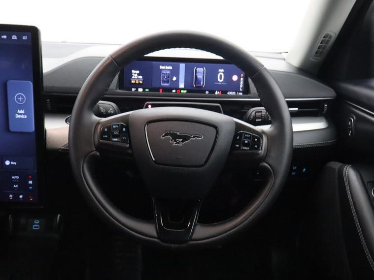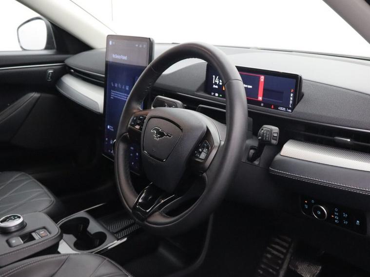 With 43, 013 miles, this Ford Mustang Mach-E Standard Range 70kWh SUV is a striking and modern fully electric SUV that combines impressive performance, advanced technology and everyday practicality. Finished in black, this Mustang Mach-E is powered by a 70kWh battery paired with a 269 PS electric motor, delivering smooth, responsive acceleration and a refined, near-silent driving experience. As a fully electric automatic SUV, it offers zero tailpipe emissions and lower running costs, making it an excellent choice for both daily commuting and longer journeys. Inside, this Ford Mustang Mach-E is packed with cutting-edge technology and comfort features designed to enhance every drive. The 10.2-inch full digital driver cluster works seamlessly alongside the impressive 15.5-inch central touchscreen, providing intuitive access to navigation, media and vehicle settings. Wireless smartphone charging keeps your device powered without the need for cables, while heated driver and passenger seats ensure comfort during colder journeys. Parking is made easier with a rear view camera and front and rear parking sensors, helping you manoeuvre confidently in tighter spaces. The Ford Mustang Mach-E Standard Range electric SUV is widely recognised for its bold design, strong electric performance and advanced technology, making it one of the most desirable electric SUVs on the market. Combining iconic Mustang styling with modern electric efficiency and practicality, this used Ford Mustang Mach-E electric SUV represents a fantastic opportunity for anyone looking for a well-equipped, high-performance electric family SUV with cutting-edge features and low running costs.