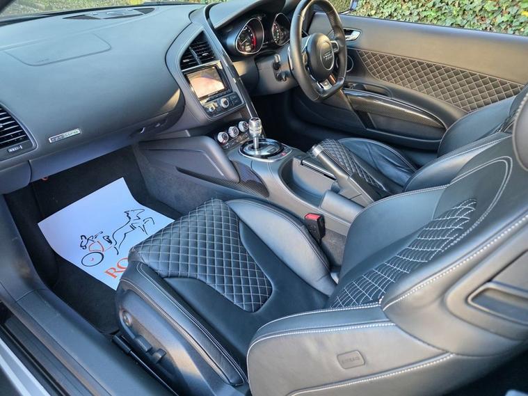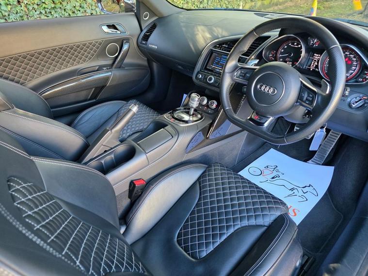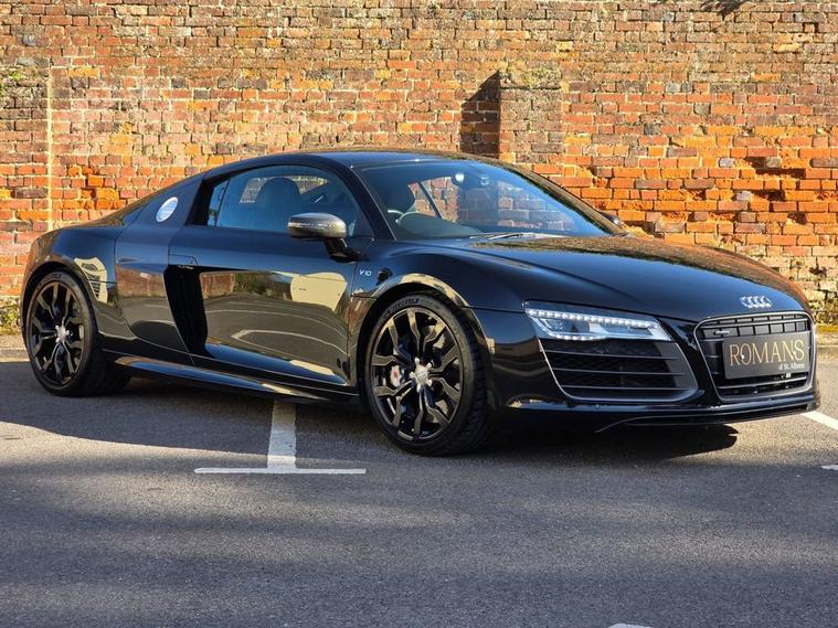 Romans of St Albans are delighted to present to you this Panther Black R8 V10 Plus in Immaculate Condition Inside and out. It has the incredible Fine Nappa Quilted Leather Inside. This car has only just fallen out of Audi Warranty, but was approved in August 2025 and has only ever been serviced by Audi! It has a Forza exhaust with 4 different valve settings. This comes with a huge list of optional extras to include: Fine Nappa Leather Pack Diamond, Full Leather Package, Bang & Olfusen Sound, Parking Assistance Pack Including Reversing Camera, Milano Leather S Line Embossed, Electrically Adjustable Sports Seats, Cruise Control, and more! FINANCE AVAILABLE. A £299 admin fee applies to third party finance companies being used. ULEZ COMPLIANT. FREE ON-SITE PARKING (ASK FOR DETAILS.) Romans after care package includes: Romans warranty for 6 months (12, 24 & 36 months are available), Main dealer cover available, Free breakdown cover for warranty duration, Full Romans service prior to delivery, 84 point vehicle inspection, 12 months MOT, Free Lifetime MOT when servicing with us (ask for details), Total value of package: £2000 - ALL INCLUSIVE IN THE PRICE. All of our clients have the added peace of mind that we have our own workshop facilities with free courtesy cars. Part Exchange very welcome, nationwide delivery also available. To avoid a wasted journey we highly recommend making an appointment, so call us now to get yours booked! Romans provide the highest of quality vehicles, and have at least 80 cars in stock at any one time. This means not all cars can be kept on site. This will also allow us to give you our fully undivided attention when viewing the vehicle you are interested in, WE ARE LOOKING TO BUY YOUR TOP SPEC, LOW MILEAGE, FULL SERVICE HISTORY PRESTIGE, SPORTS, AND 4X4 VEHICLES. GET MORE FOR YOUR VEHICLE BY EITHER SELLING TO US, OR ASKING US TO SELL YOUR VEHICLE FOR YOU. PRIVATE BUYERS WANT WARRANTIES, THEY WANT TO PART EXCHANGE, THEY WANT FINANCE - TAKE ADVANTAGE OF ALL OUR FACILITIES. CALL US NOW TO DISCUSS GETTING RID OF YOUR VEHICLE QUICKLY.