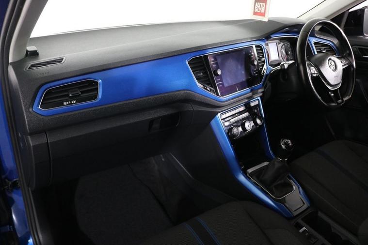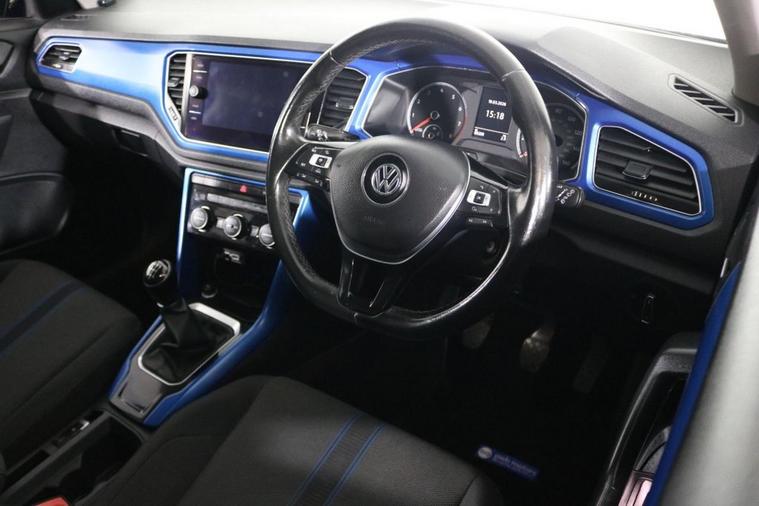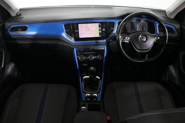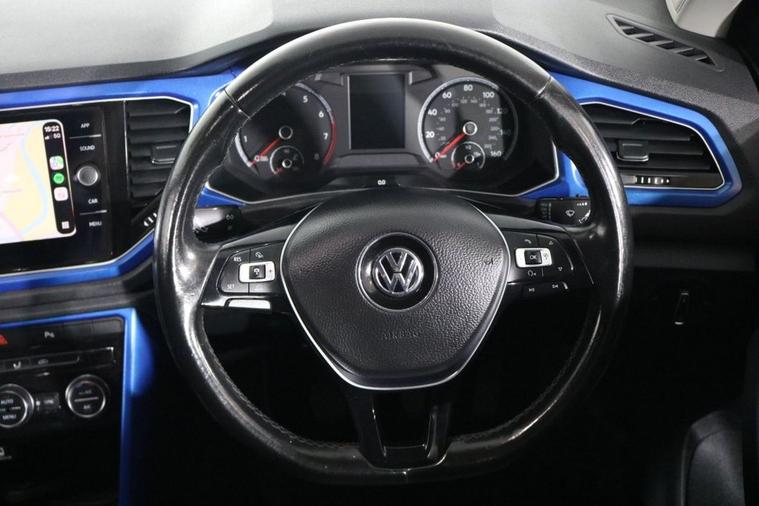 This well maintained Volkswagen T-Roc Design finished in Ravenna Blue, Black Roof, 17 inch Alloy Wheels and Rear Privacy Glass. Keep connected with your Phones APPS including SATELLITE NAVIGATION through APPLE CARPLAY, ANDROID AUTO and MIRROR LINK. Park in ease with FRONT & REAR PARKING SENSORS with Visual Display. Listen to your music through DAB Digital Radio. Keep connected with BLUETOOTH Phone System. Comfortable to drive with ADAPTIVE CRUISE CONTROL and Dual-Zone CLIMATE CONTROLLED AIR CONDITIONING. Safe to journey with Lane Assist, Driver Alert System and Front Assist with City Emergency Braking. Well equipped with Power-Fold Door Mirrors, Auto Headlights and Rain-Activated Wipers. Also fitted with ISOFIX seats, Multifunctional Steering Wheel, Immobiliser, Alarm and Remote Door Locking with 2 x keys. Buy in confidence with JUST 2 OWNERS from new and SERVICE HISTORY with 8 x Documented Services.
