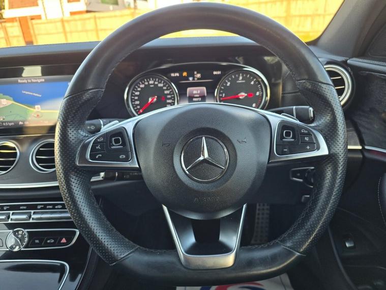 This 2017 Mercedes Benz E Class E220d AMG Line boasts a clear vehicle history and has had only two owners, offering excellent provenance. Powered by a 2.0L Euro 6 diesel engine, this model features a sophisticated AMG Line trim. For your convenience and comfort, it includes LED High Performance headlamps with integrated daytime running lights, Audio 20 USB with Bluetooth connectivity, and heated front seats. Manoeuvring is made easier with the Parking Package, which incorporates Active Parking Assist and front and rear parking sensors, complemented by automatic two zone climate control. The E220d AMG Line offers impressive performance, achieving 0-60mph in just 7.3 seconds, demonstrating its dynamic capability. This model also stands out with its low CO2 emissions, making it a more environmentally conscious choice compared to many similar vehicles. Furthermore, the generous boot space ensures practicality for all your needs, whether for daily errands or longer journeys. With MOT valid until August 2026, this E Class is ready for its next owner. This car comes with Cruise Control. Ambient Lighting. Reverse Camera. Heated Front Seats. Navigation. 2x Keys. 6 Main Dealer Mercedes Benz Service History. Last Service done @91k