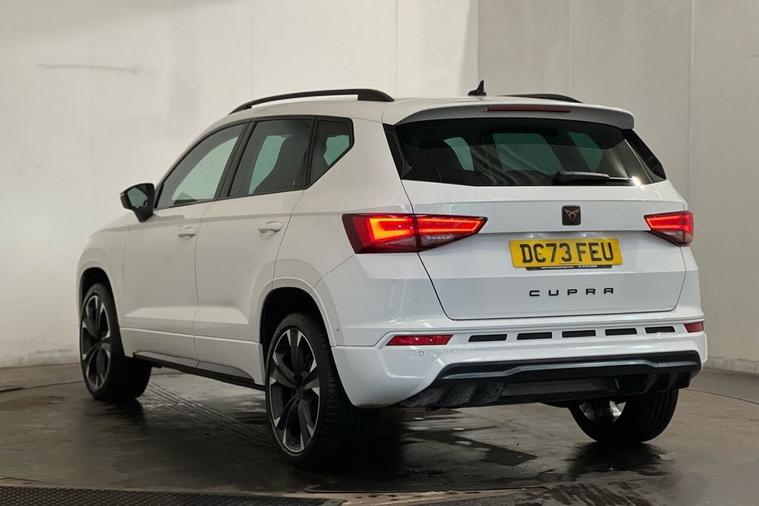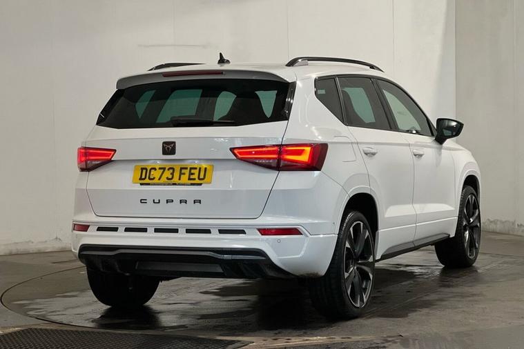 This 2023 CUPRA Ateca EcoTSI V1 presents an exceptional ownership proposition with its remarkably low mileage of just 12935 miles, a testament to its careful use by its single owner. This Euro 6 compliant 1.5 litre petrol model, presented in the V1 trim, offers a compelling blend of style and practicality. Inside, youll find convenient features such as keyless entry, dual zone climate control to keep everyone comfortable, and a wireless phone charger to keep your devices powered. The advanced Safety and Driving Pack includes a 360 degree camera for effortless parking, while the LED headlamps with lens and LED fog lamps featuring cornering function ensure excellent visibility. The CUPRA Ateca EcoTSI V1 stands out from its peers with several key advantages. Its acceleration from 0 to 60mph in just 9.3 seconds offers a responsive driving experience. Furthermore, the generous boot space provides ample room for all your luggage or shopping needs, making it a versatile choice for families and individuals alike. This vehicle also benefits from a low insurance group, which can contribute to lower running costs.