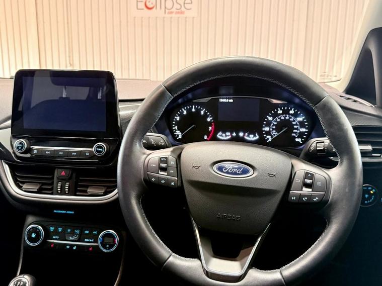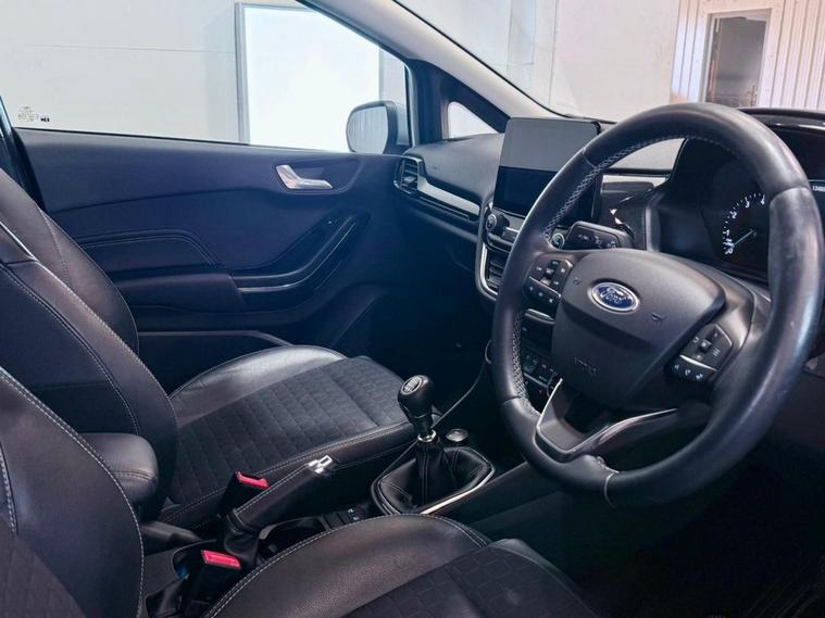 Ford Fiesta 1.0T Ecoboost Active X first registered March 2020. Finished on Moonlight Silver with black part leather part alcantara and grey diamond cut 17 inch alloy wheels. Specification includes heated seats, heated steering wheel, apple carplay/android auto, Bluetooth and DAB radio, multi function steering wheel, electrically folding door mirrors, reverse camera with front and rear sensors, key-less entry and key-less start. Serviced at 5747, 10299 and freshly serviced by ourselves. A fresh MOT will be provided upon sale.