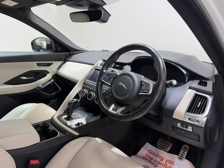 ** NATIONWIDE DELIVERY ** DIGITAL COCKPIT ** APPLE CARPLAY ** ANDROID AUTO ** MEMORY SEATS ** HEATED SEATS ** MERIDIAN SOUND SYSTEM ** ELECTRIC TAILGATE ** HEATED STEERING WHEEL ** 360 CAMERA ** 1 YEAR MOT ADVISORY FREE ** SERVICE HISTORY ** FRESH SERVICE ** 6 MONTH WARRANTY ** 1 YEAR AA BREAKDOWN COVER ** ULEZ COMPLIANT ** Experience premium performance and striking design with the JAGUAR E-PACE 2.0 D180 R-Dynamic HSE SUV. Finished with 20in 5 split-spoke alloy wheels in satin grey diamond-turned finish and complemented by R-Dynamic body styling, this SUV delivers real road presence. Inside, enjoy luxury with 18-way heated electric memory front seats, ebony Morzine headlining, and dual-zone climate control for maximum comfort. Practicality is covered with a 60-40 split-folding rear seat and a power tailgate, while keyless entry and an electric parking brake add everyday convenience. Packed with cutting-edge technology, this E-PACE features a 10in Touch Pro system, Navigation Pro, interactive driver display, and smartphone integration with Apple CarPlay and Android Auto. The Meridian 380W sound system, DAB radio, and Bluetooth connectivity provide an excellent in-car experience. Advanced safety and driver assistance features include adaptive cruise control with queue assist, blind spot assist, lane keep assist, driver condition monitor, traffic sign recognition, and a full 360-degree parking aid with park assist and rear-view camera. Combining luxury, innovation, and performance, this Jaguar E-PACE is a truly standout SUV.