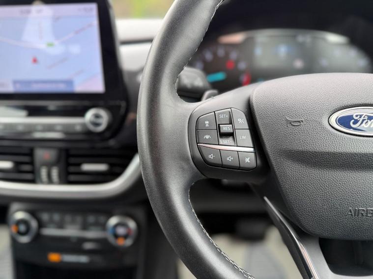Here for sale at Leigh Cars Ltd we are delighted to present this superb high specification ULEZ EXEMPT example of a Ford Puma 1.0 ST-Line SUV 5 door petrol automatic 125bhp hatchback finished in blue metallic paint. This superb example comes with a full Ford service history (due every 2 years or 18k miles). As part of our thorough pre sale preparations this wonderful example has had a full safety inspection completed and a brand new MOT for your peace of mind - expiry March 2027. This Puma offers a competitive list of equipment including factory upgraded driver assistance pack including massage seats, adaptive cruise and park assist, and other standard options such as rear parking aid, rear parking camera and active park assist, half black leather interior, SYNC 3 satellite navigation, cruise control, lane keeping aid and lane departure warning, colour touch screen infotainment system, bluetooth connectivity, DAB radio, voice command, climate controlled air conditioning, automatic headlights + rain sensing wipers, electric adjustable door mirrors, power folding door mirrors, heated windscreen, remote central locking, Alloy Wheels, 2 keys + much more. Driven by Fords award-winning 1.0 petrol engine producing 125bhp, and an automatic gearbox, this Puma gives a drive guaranteed not to disappoint. Economy is not compromised at all, being a Euro 6 engine it is also ULEZ charge exempt. Save £££ from new and opt for this stunning low mileage example with some fantastic finance offers available. As we are an AA accredited dealer, with any purchase through Leigh Cars Ltd, you will also receive 12 months free breakdown assistance. We also offer AA warranty packages for up to 2 years subject to terms and conditions. We offer very competitive low rate finance packages including some fantastic PCP options on this one - Why not check out our finance calculator on our website where you can tailor a personal quote to yourself and instantly apply for finance online where we will have an answer for you within 15 minutes. We offer part exchange on all of our vehicles and nationwide delivery and we also offer home or work appointment services subject to conditions. We are rated 5 stars by our customer reviews, check us out on Autotrader, Trustpilot, Google, Car Gurus or Facebook (@leighcarsltd) to see what our customers have to say about the quality service we provide. We are very proud to be a Car Gurus top rated dealer 2018, 2019, 2020, 2021, 2022 and 2023. Quality Cars You Can Trust.