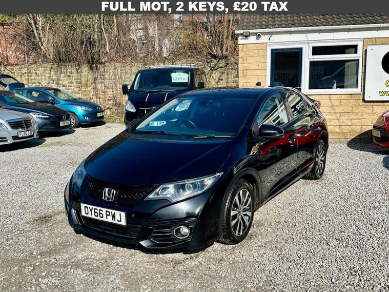 LPR MOTORS OF SHEFFIELD ARE DELIGHTED TO OFFER FOR SALE THIS MOST SOUGHT AFTER 2016 / 66 HONDA CIVIC 1.6i-DTEC SE PLUS NAV FINISHED IN BLACK WITH BLACK INTERIOR. THE HIGH SPECIFICATION INCLUDES TOUCH SCREEN NAVIGATION - BLUETOOTH TELEPHONE - DAB RADIO - MULTI FUNCTION STEERING WHEEL - CRUISE CONTROL - REAR CAMERA. SUPPLIED WITH 2 KEYS AND ALL THE ORIGNAL HANDBOOKS ALONG WITH THE ORIGINAL SERVICE BOOK WITH 6 STAMPS ENTERED. THE LAST SERVICE HAS JUST BEEN CARRIED OUT ALONG WITH A 12 MONTHS ADVISORY FREE M.O.T SO ITS READY TO DRIVE AWAY TODAY! CALL LPR MOTORS OF SHEFFIELD ON 01143383342 TO ARRANGE A VIEWING OR RESERVE, 12 MONTHS AA RECOVERY INCLUDED AND 6 MONTHS WARRANTY AVAILABLE, PX WELCOME AND FINANCE ALSO AVAILABLE. TOO BUSY TO CALL, SEND US A WHATSAPP 01143383342 AND WELL BE STRAIGHT BACK TO YOU.