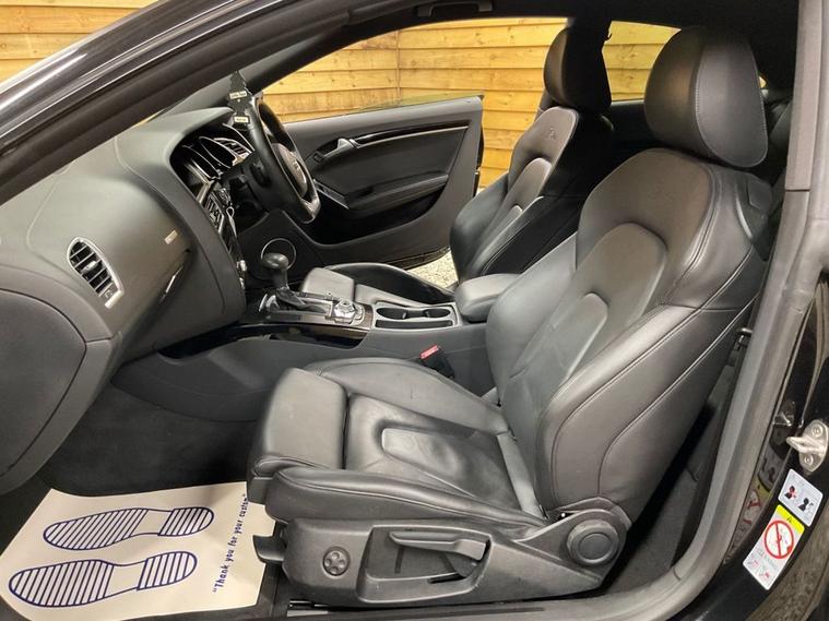 21, 027 MILES ONLY.YES JUST 21, 027 MILES FSHDEMO + ONE LOCAL PRIVATE OWNER FROM NEWUNIQUE OPPORTUNITY NOT TO BE MISSEDTHIS MUCH SOUGHT AFTER INCREDIBLY LOW MILEAGE AUDI A5 COUPE IS FINISHED IN BRILLIANT BLACK WITH FULL GREY LEATHER UPHOLSTERY.HIGH SPEC INCLUDES19ALLOYS. 8 SPEED AUTOMATIC WITH PADDLE SHIFTS. CRUISE. S/S TECHNOLOGY. TRACTION. MULTI FUNCTION STEERING WHEEL. COLOUR SCREEN DISPLAY. DAB RADIO. SAT/NAV. MEDIA. BLUETOOTH. F/R PARKING AID. HEATED SEATS. LED LIGHTS. PRIVACY GLASS. OVER MATS. ETCEXCELLENT EXTERIOR & INTERIOR CONDITIONA REAL PLEASURE TO DRIVEMUST BE SEEN TO BE APPRECIATEDFULL DEALER FACILITIESFAMILY RUN BUSINESS