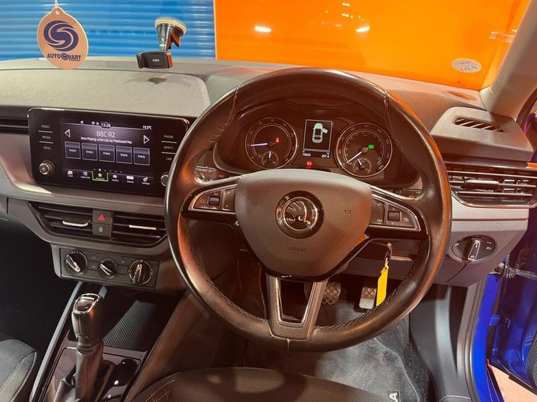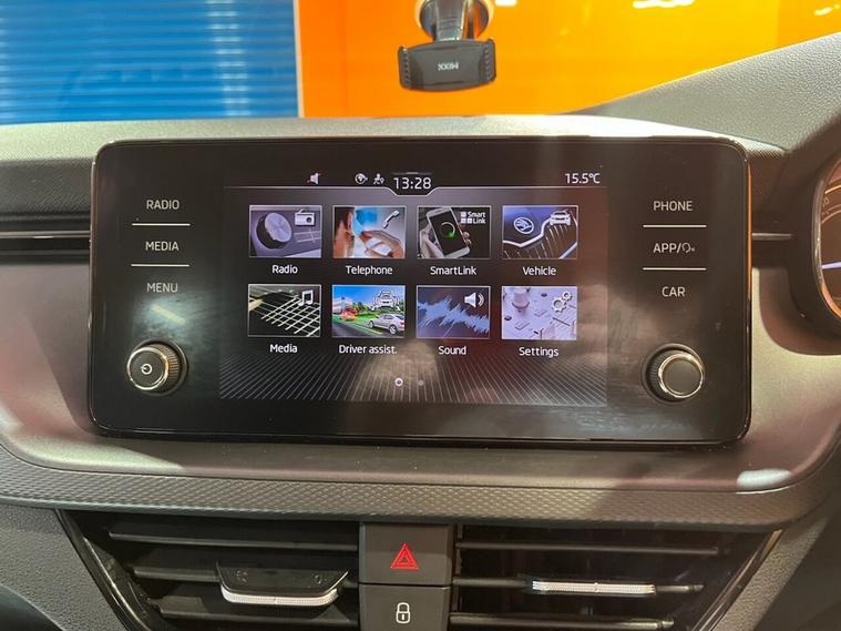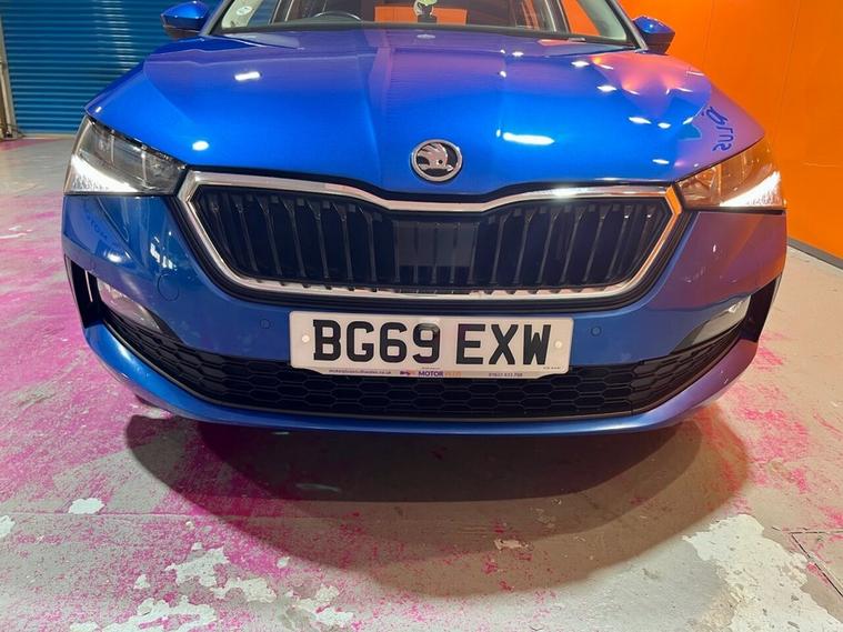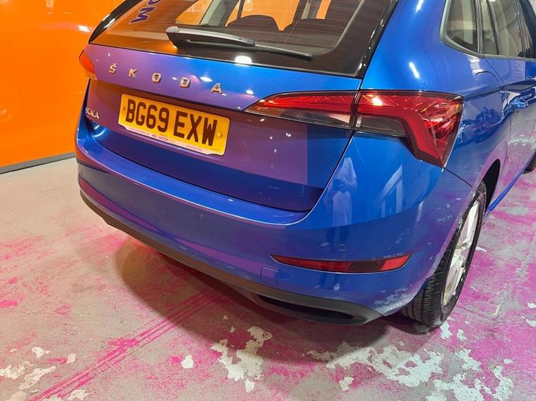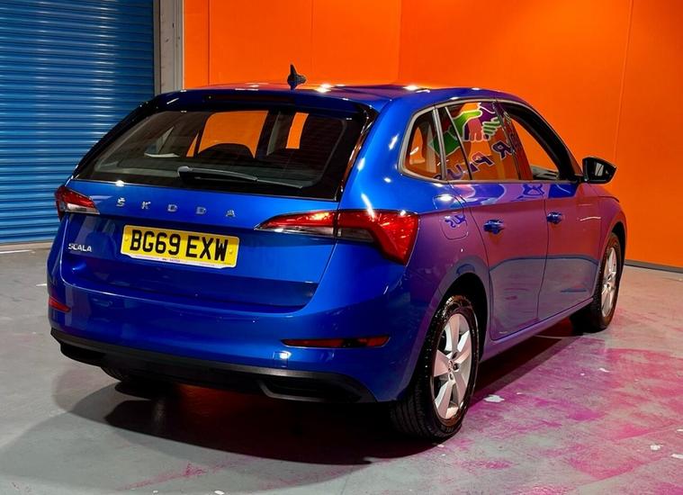 The Skoda Scala TSI SE is a 2020 model, boasting a 1.0L Petrol Engine and a Euro 6 emission class. This trim level comes equipped with a range of convenient features, including Parking Sensors - Front and Rear, which provide an added layer of safety and ease when navigating tight spaces. The vehicle also features SmartLink, allowing seamless integration with Android Auto and Apple CarPlay, making it simple to stay connected on the go. Additionally, the Rain and Light Assistant with Auto-Dimming Rear View Mirror ensures optimal visibility in various weather conditions, while the automatic headlights provide added convenience. Bluetooth connectivity is also standard, enabling effortless hands-free phone use. The Skoda Scala TSI SE is a capable performer, accelerating from 0-60mph in a respectable 9.6 seconds. This impressive acceleration is a testament to the vehicles responsive engine, making it a strong contender in its class. With its low CO2 emissions, this Scala is not only a pleasure to drive but also an environmentally friendly choice. The Scalas impressive feature set and impressive performance make it an attractive option for those seeking a reliable and efficient vehicle.