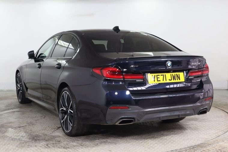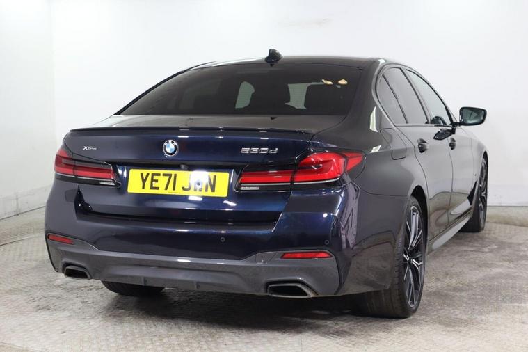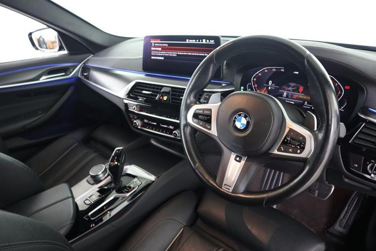 With an MOT valid until January 2027 and a full service history, this 2022 BMW 5 Series 530d M Sport offers excellent peace of mind. This Four Wheel Drive model features a powerful 3.0L Diesel Hybrid engine and meets Euro 6 emission standards. Its M Sport trim ensures a dynamic driving experience, complemented by LED headlights for superior visibility. Inside, you'll find front seat heating for comfort, and the BMW Live Cockpit Professional with Bluetooth connectivity keeps you informed and entertained. The BMW Connected Package Professional seamlessly integrates your smartphone with Android Auto and Apple CarPlay. This BMW 5 Series excels with its impressive acceleration, reaching 0-62mph in just 5.4 seconds, a performance that sets it apart from many similar vehicles. Parking is made effortless thanks to the Parking Assistant, which includes front and rear sensors along with a rear camera. The generous boot space provides ample room for luggage or shopping, making it a practical choice for everyday use and longer journeys. The vehicle's last service was completed on 24 January 2026 at 53352 miles, further underscoring its well maintained condition.