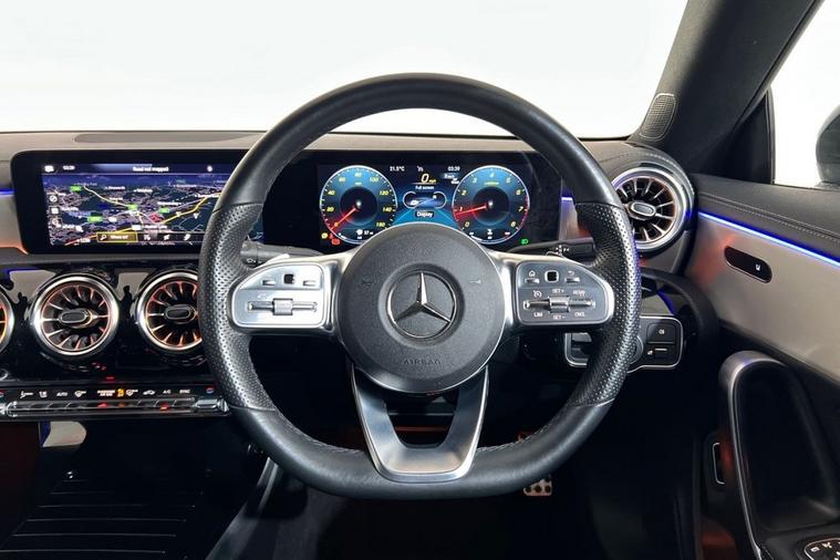 This 2022 Mercedes-Benz CLA200 AMG Line (Premium) boasts a clear vehicle history and an MOT valid until July 2026, offering peace of mind. This stylish coupe features a 1.3L petrol engine, meeting Euro 6 emission standards. Inside, youll find the comfort of heated front seats and the convenience of the KEYLESS-GO package for effortless entry. The cabin is kept at your ideal temperature with THERMOTRONIC luxury automatic climate control, while the Mercedes-Benz sound system, with six speakers, delivers an impressive 100W output for your listening pleasure. Driving is enhanced by the bright and efficient LED High Performance headlamps with integrated daytime running lights. The CLA200 AMG Line (Premium) is designed to impress, offering a fuel economy of 46 mpg, which is a strong indicator of its efficiency compared to similar vehicles. Its low CO2 emissions further highlight its consideration for the environment. This Mercedes-Benz combines sophisticated design with practical features, making it a compelling choice for those seeking a premium driving experience.