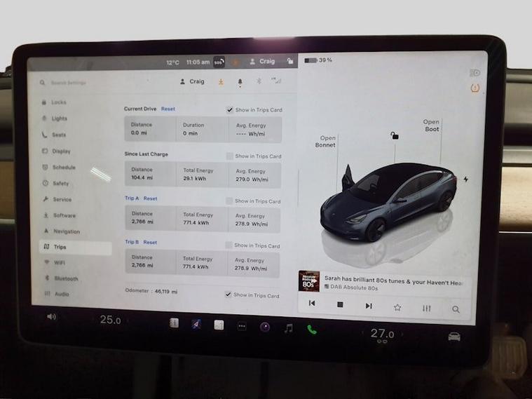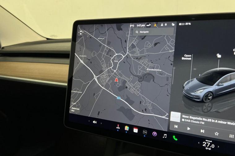 This 2023 Tesla Model 3 Long Range boasts a clear vehicle history and has had only one owner since new, offering peace of mind for its next custodian. As a fully electric vehicle, it features a substantial 78 kWh battery, providing an impressive maximum range of 389 miles when new. This Four Wheel Drive model is equipped with a fixed panoramic glass roof, heated rear seats, and a heated steering wheel for enhanced comfort in all conditions. It also includes adaptive cruise control and air conditioning, ensuring a smooth and pleasant driving experience. With its MOT valid until February 2027, this Model 3 is ready for many miles of enjoyable motoring. The highlights of this Tesla Model 3 Long Range demonstrate its superior performance and practicality. Its acceleration is particularly noteworthy, achieving 0-60mph in a rapid 4.2 seconds, setting it apart from many other electric vehicles. Furthermore, the 389 mile maximum range from its 78 kWh battery means fewer stops on longer journeys compared to models with smaller batteries. Charging is also convenient, with a full charge at home taking approximately 12 hours, and a rapid charge to 80% achievable in just 26 minutes at a public charging station. The generous boot space offers ample room for luggage, shopping, or equipment, making it a versatile choice for everyday use and adventures alike.