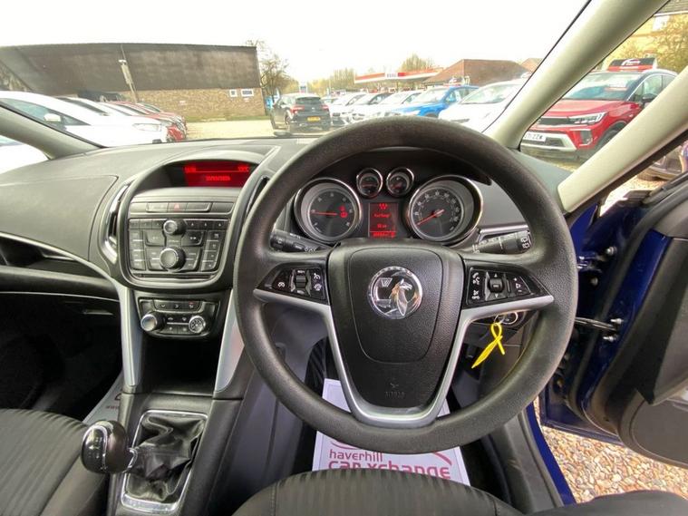 DAB DIGITAL RADIO-CD-MP3 PLAYER+AIR-CONDITIONING+CRUISE CONTROL+FRONT & REAR ELECTRIC WINDOWS+DAYTIME RUNNING LIGHTS+FRONT & REAR PARKING ASSISTANCE+ROYAL BLUE PAINT. At Haverhill Car Xchange we would like to offer you our Vauxhall Zafira Tourer Exclusiv MPV which has been finished in a Royal Blue paint with Jet Black Mando Cloth upholstery. Specification Includes DAB Digital Radio-CD-MP3 player, Aux in Socket, 12 Volt Power Sockets in Front and Rear, Air-Conditioning, Cruise Control, Front and Rear Electric Windows, Body Coloured Bumpers/Door Handles and Door Mirrors, Black Roof Rails, Daytime Running Lights, Front Fog Lights, LED Centre Break Light, Front and Rear Parking Assistance, Steering Wheel Mounted Audio Controls, Heated Rear Window, Tinted Glass, 17 Inch Steel Wheels, Power Assisted Steering, ABS Breaking System, Airbags, Alarm, Immobiliser, Remote Central Locking and ISOFIX Anchorage Points for Child Seats.
