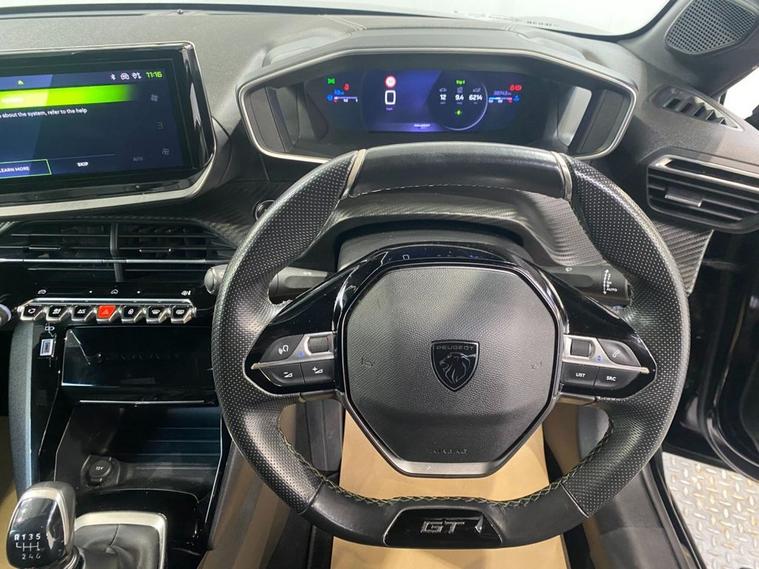 With its striking design and a fantastic interior the Peugeot 208 is a superb hatchback to look at, inside and out. It comes packed with technology and really stands out from the crowd with its low stance and intricate detailing. This ones finished in Nera Black Pearl - a stunning collour that really shimmers in sunlight and also has lots of sporty black inserts, privacy glass, a rear spoiler and 17 diamond cut alloy wheels. The sports seats are trimmed in part leather and are supportive, comfortable and very clean. Peugeots 3D digital dials are projected onto different layers to give a three-dimensional effect and look great and the 10 infotainment system has eveything you need - Bluetooth, parking camera and Apple CarPlay / Android Auto. Cruise, audio and telephone controls can be easily accessed by the leather GT steering wheel and as well as the camera, the car has both front and rear park sensors.