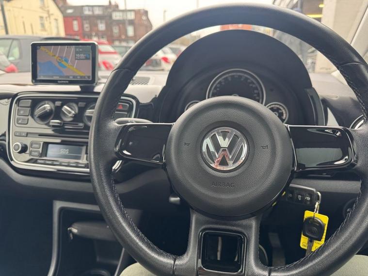 Our VW Up is a well-maintained compact hatchback featuring a built-in navigation and Bluetooth system for effortless city driving. It boasts a full service history ensuring it has been cared for meticulously throughout its life. Only £20 year tax, Low insurance group (2) and excellent miles per gallon (60). Its efficient 1.0-litre engine provides a perfect balance of performance and fuel economy, making it an ideal choice for urban commuters or first time car. The spacious interior comfortably seats four, and the high-quality materials add a touch of sophistication. Spec highlights include electric sunroof (£675 optional upgrade), Air Con, Remote central locking, spare wheel and heated front seats. With its combination of practicality, reliability, and modern features, this VW Up is ready to navigate both busy streets and weekend getaways with ease. Call 01138032273 or visit dealer's website