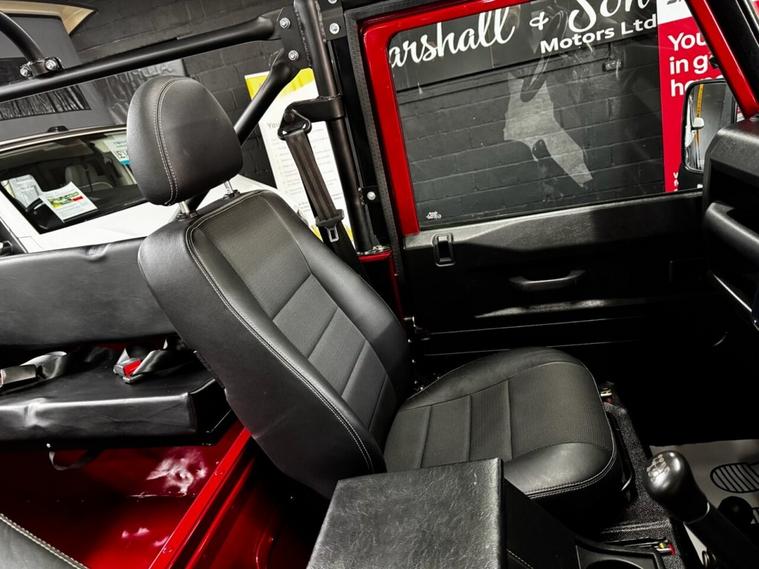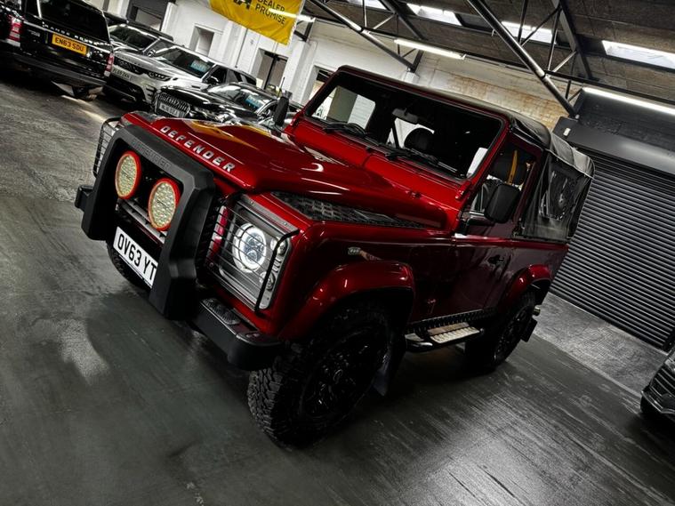 2013 Land Rover Defender 90 2.2 TDCi XS Soft Top Conversion A truly one-off and immaculately presented Defender 90, professionally converted to a soft top and finished to an exceptionally high standard throughout. This is a rare opportunity to own a tastefully upgraded example that blends classic Defender character with modern enhancements and serious capability. Finished in stunning Firenze Red with a black soft top and complemented by a black half leather interior, this example looks every bit as good as it drives. The practical 6-seat configuration includes two rear inward-facing bench seats, making it ideal for family use or social weekends out. Built on a galvanised chassis for long-term peace of mind, this XS model benefits from a high-quality professional soft top conversion, giving it a distinctive and desirable look while retaining everyday usability. Performance has been enhanced with a Stage 2 tune and a bespoke stainless steel exhaust system, delivering improved power and a more engaging driving experience. Upgraded Fox shock absorbers and Bilstein steering dampers ensure it handles confidently both on and off-road, while a recently fitted heavy-duty clutch adds further reassurance. The exterior has been tastefully upgraded with gloss black Sawtooth alloy wheels, LED headlights with DRLs, A-bar with spotlights, side steps, chequer plating, and aluminium door handles giving it a strong, premium presence. Inside, the cabin offers an excellent balance of comfort and practicality, featuring heated half leather seats and a large touchscreen media system to bring modern convenience into this iconic vehicle. It also benefits from an Optimill removable steering wheel for added security and style. A standout Defender that has clearly been cherished and professionally upgraded, offering a unique combination of style, performance, and usability perfect for someone wanting something special thats ready to be enjoyed.