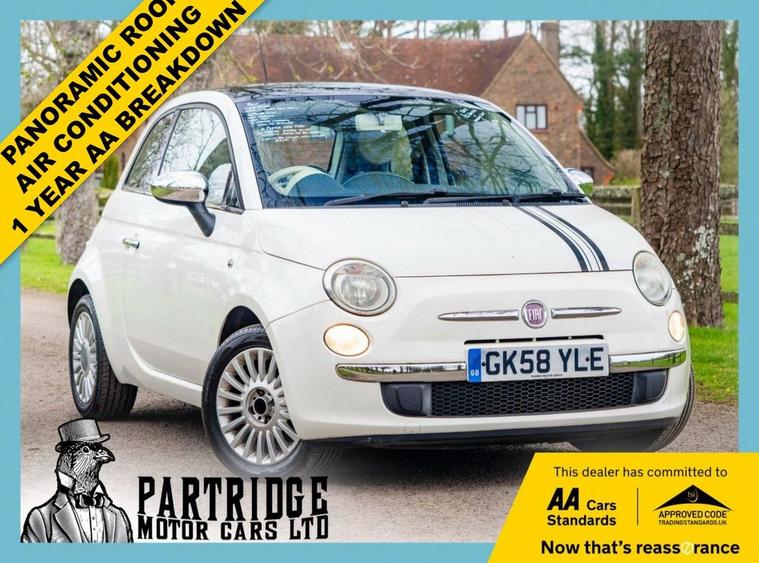HPI CLEAR, SUPPLIED WITH NEW MOT, SUPPLIED WITH NEW SERVICE, LOW MILEAGE, PANORAMIC ROOF, ALLOY WHEELS, AIR CONDITIONING, PANORAMIC ROOF, 3 DOORS, MANUAL, 3 MONTHS WARRANTY, 1 YEAR AA BREAKDOWN, AA DEALER **2008 Fiat 500 1.2 Lounge: Low Mileage, Pan Roof, New MOT! AA Approved!** ******** An absolutely stunning example of the quintessential Italian city car! This is the 2008 Fiat 500 in the highly desirable Lounge specification, finished in the iconic and incredibly sought-after **Bossanova White**. Boasting fantastic **Low Mileage**, this vehicle feels remarkably fresh and drives superbly. The Lounge trim is the one everybody wants, featuring the signature **Panoramic Glass Roof** that floods the retro cabin with natural light, along with upgraded factory-fitted **Alloy Wheels**. Inside, it comes equipped with the essential comfort of **Air Conditioning** to keep you cool all year round. Powered by the ultra-reliable **1.2L petrol engine** mated to a smooth **5-Speed Manual** gearbox, it offers a fantastic blend of peppy city performance, incredibly cheap running costs, and bulletproof reliability. With its classic **3-Door** styling, it is an absolute breeze to park and maneuver. ******** **Key Features:** *** **Low Mileage**: A lightly used example that feels tight and responsive on the road. *** **Lounge Specification**: The top-tier trim featuring fantastic styling and premium interior comfort. *** **Panoramic Glass Roof**: A fixed glass roof with a sunblind that adds a premium, airy feel to the cabin. *** **Air Conditioning**: Essential for keeping the interior cool and comfortable whatever the weather. *** **Bossanova White Paintwork**: The definitive, classic Fiat colour that truly turns heads. *** **Alloy Wheels**: Stylish factory-fitted wheels complementing the cars retro stance. *** **1.2L Petrol Engine**: The preferred 4-cylinder engine choice for robust reliability and great fuel economy. *** **3-Door Styling**: The quintessential, iconic Fiat 500 shape that perfectly blends charm and practicality. ******** **Buy with Confidence:** *** **HPI Clear**: Verified history check. *** **Supplied with a New Service**: Freshly prepared by our expert mechanics. *** **Supplied with a New MOT**: A full 12-month certificate for the new owner. *** **3 Months Warranty**: Comprehensive cover included for reassurance. *** **1 Year Breakdown Cover**: Nationwide AA assistance included. *** **AA Approved Dealer**: Inspected to exacting AA standards. ******** **Partridge Motor Cars - Your Trusted AA Dealer:** We are 5-star rated for a reason! Every vehicle undergoes a meticulous inspection to meet our high expectations. ******** **Interested?** *** Call **01403485928** or visit * dealer's website to book a viewing. *** Finance Available: Flexible options to drive away today. *** Part Exchange Welcome: Trade in your old car for a great deal.