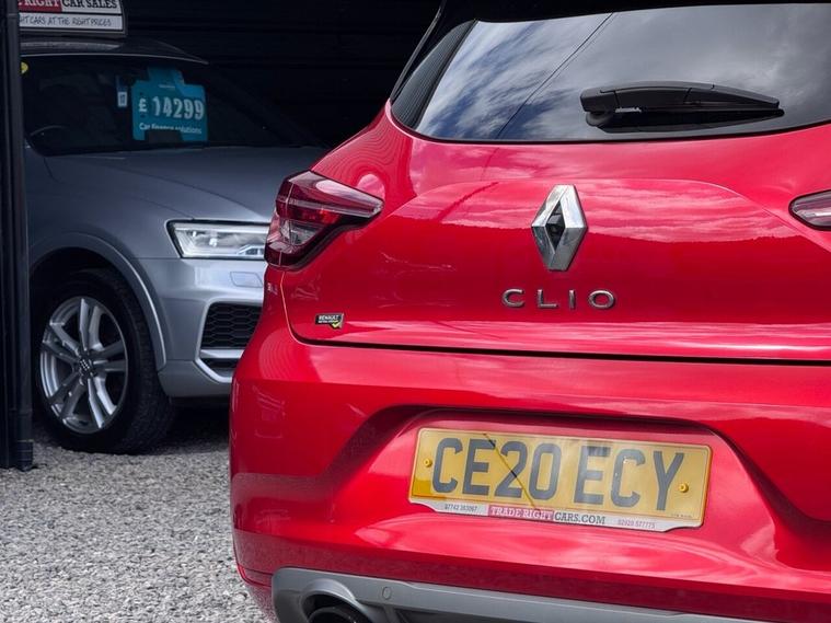 JUST ARRIVED & READY TO DRIVE AWAY! 2020/20 Renault Clio 1.0 TCe RS Line finished in the iconic Flame Red. We are pleased to offer this lovely 5 door petrol hatchback. This is the highly desirable and economical 1.0 litre model with a 5 speed manual transmission that offers 99 BHP and over 50 MPG. Insurance group 10/50. It has covered just 39, 780 miles with Renault service history (3 services) and drives as you would expect. Recently serviced @ 39, 314 miles. MOT until 23rd March 2027 with no advisories. The car is ready to drive away. We will also include a complimentary 12 month AA breakdown cover. Two owners from new, the last owner has had the car since 2023. Euro 6 status - ULEZ compliant. A superb low mileage example with the sought-after RS Line specification. Highlights include; 17 RS alloy wheels, automatic A/C climate control, electric folding mirrors, cruise control with speed limiter, navigation with 9.3 high resolution touchscreen display, electric windows x 4, privacy glass, LED headlights with LED DRLs, hill start assist, rear parking sensors with parking pack, LDW, remote central locking x 2 with keyless start, LKA, DAB, USB, bluetooth connectivity with BT audio and RS Line interior/exterior packs. The full specification list can be found on our website. Advertised below the AutoTrader RRP. Please let us know if you would like any further information or a detailed video sent via WhatsApp.