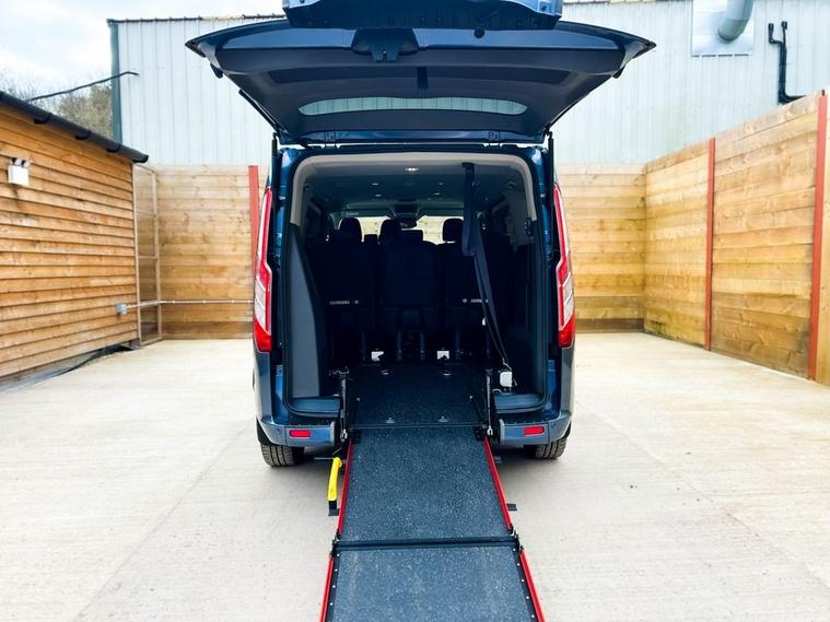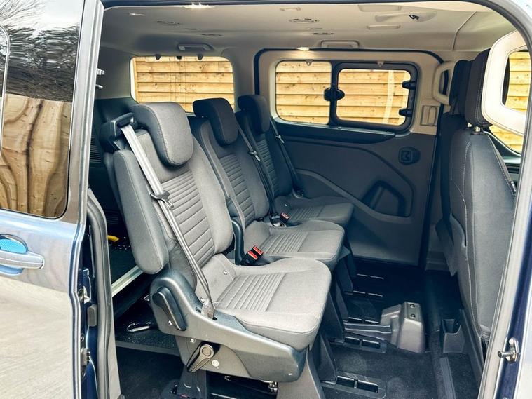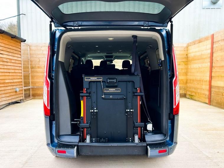 This Allied Mobility converted Ford transit Custom Wheelchair Accessible Vehicle (WAV) has 6 Seats (3 Front and 3 Rear). Equipment includes Wheelchair Ramp, Electric Winch, Air Conditioning, Electric Front Windows, Electric Adjustable Wing Mirrors, Power Steering, Remote Central Locking, Tinted Rear Windows.