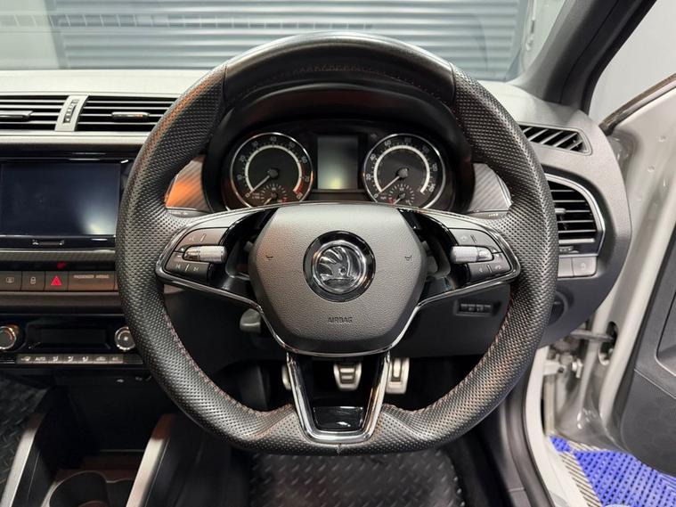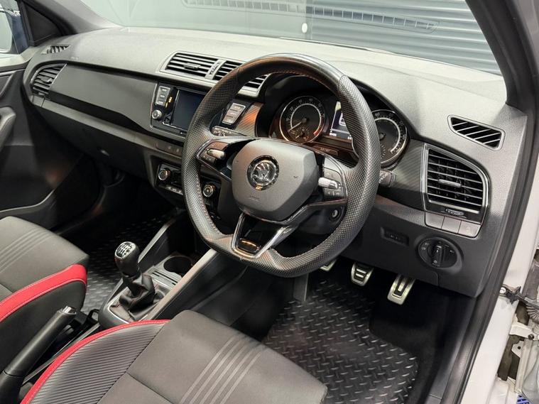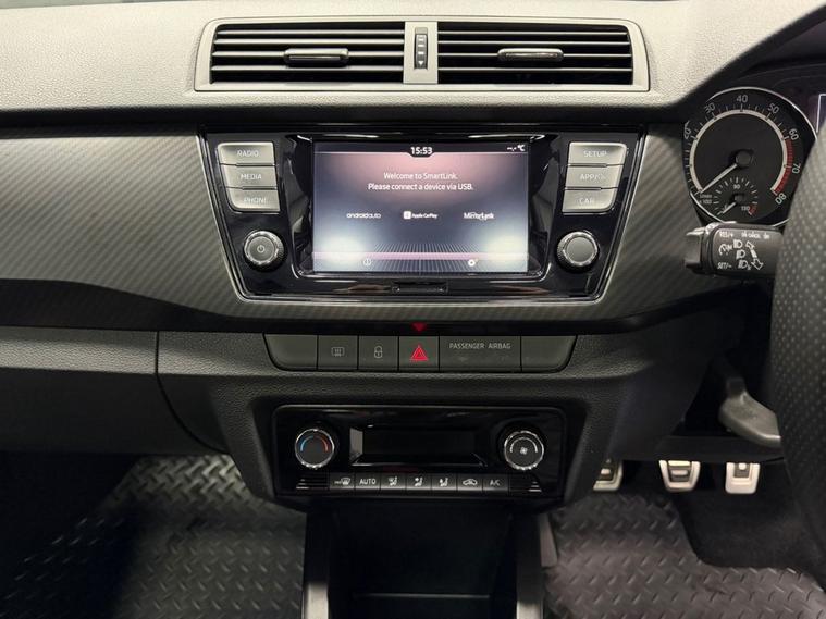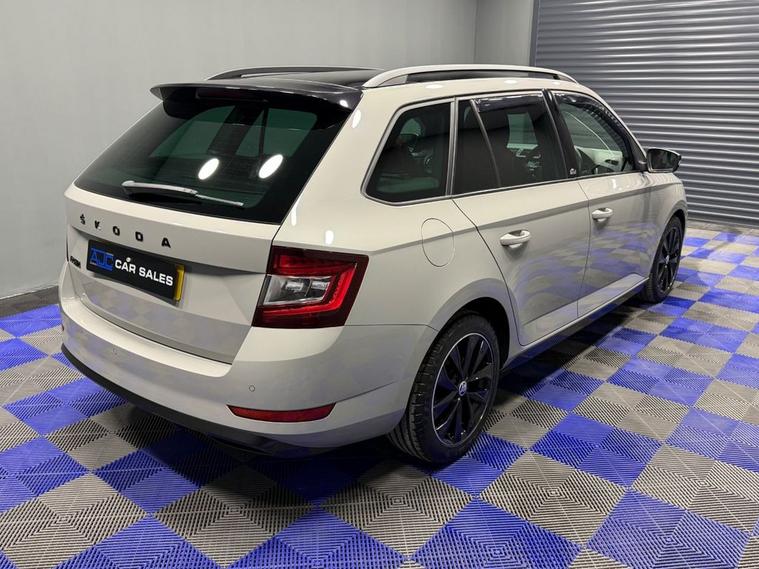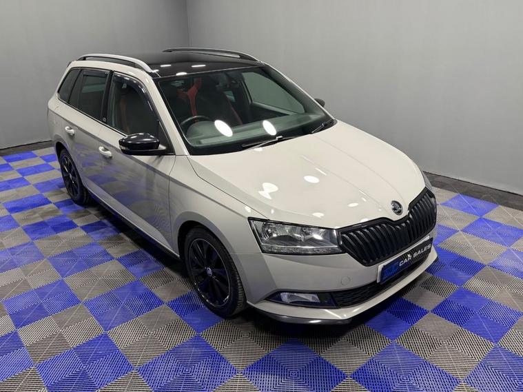 AJC Car Sales presents the SKODA FABIA 1.0 TSI Monte Carlo Estate 5dr Petrol Manual Euro 6 (s/s) (110 ps) finished off in Meteor Grey with 16 Black Italia Alloy Wheels, Two Keys and a Great Service Record. The 2020 koda Fabia 1.0 TSI Monte Carlo Estate is a stylish and practical compact estate that blends sporty design with everyday usability. Powered by a responsive 1.0-litre turbocharged petrol engine producing 110 PS, paired with a smooth manual gearbox, this Euro 6 compliant model delivers an engaging yet efficient driving experience, ideal for both urban commutes and longer journeys. The Monte Carlo trim enhances the Fabias appeal with distinctive sporty styling, including a contrasting black roof, black exterior detailing, rear spoiler, and privacy glass, giving it a dynamic and premium road presence. Inside, the cabin features sports seats with carbon-style upholstery, red stitching, and a multifunction leather steering wheel, creating a refined yet athletic feel. Practicality is a key strength, with five doors and a generous 530-litre boot capacity, making it an excellent choice for families or those needing extra load space without sacrificing compact dimensions. Well-equipped as standard, this model includes climate control air conditioning, a touchscreen infotainment system with DAB radio, Bluetooth connectivity, SmartLink integration, and a range of driver assistance features such as a speed limiter and collision mitigation system. Efficient and economical, the 1.0 TSI engine combines strong performance with low emissions, while the stop/start system helps maximise fuel efficiency. With its balance of sporty styling, practicality, and modern technology, the Fabia Monte Carlo Estate stands out as a versatile and desirable small estate car.