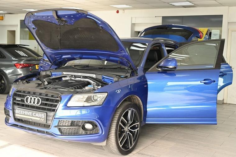 DRIVE AWAY TODAY OR HOME DELIVERY TO YOUR DOORSTEP FINANCE & PART EXCHANGE ARRANGED ONLINE** 7 DAY MONEY BACK GUARANTEE** Lovely spec Audi Q5 2.0 tdi quattro s-line s-tronic in metallic blue with good service history including timing belt upgraded Alloys sat nav audi multimedia dab radio bluetooth media full black s-line leather seats with armrest heated seats electric heated folding door mirrors front & rear parking aid sensors xenon lights flat bottom s-line steering wheel with f1 style paddleshifts push button tailgate alloys privacy