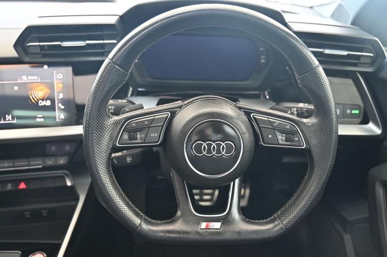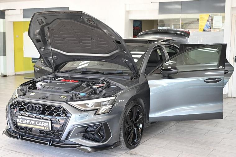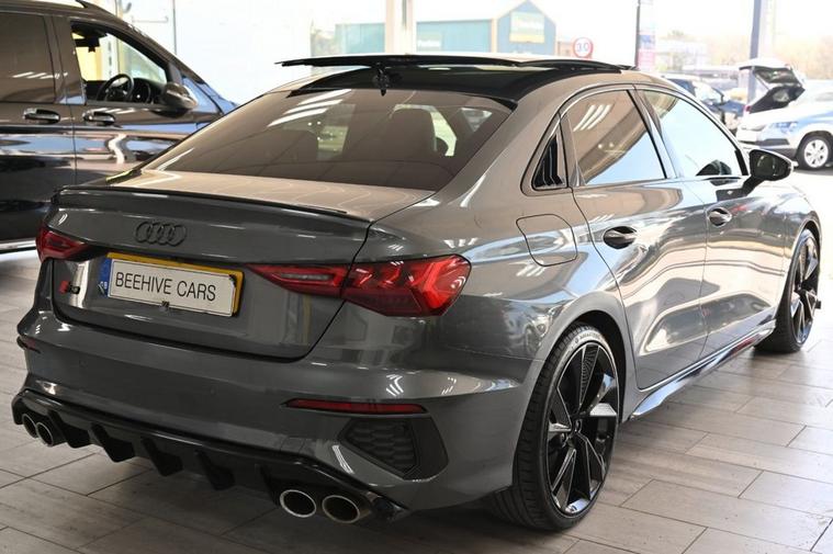 DRIVE AWAY TODAY OR HOME DELIVERY TO YOUR DOORSTEP FINANCE & PART EXCHANGE ARRANGED ONLINE** 7 DAY MONEY BACK GUARANTEE** Lovely Audi s3 tfsi saloon quattro s-tronic in metallic grey with service history sat nav dab radio bluetooth media usb reverse camera panoramic glass roof full black s3 leather seats with armrest heated seats electric heated folding door mirrors xenon lights flat bottom s3 steering wheel with f1 style paddleshifts auto comfort efficiency individual dynamic audi drive select driving modes push button start stop alloys privacy