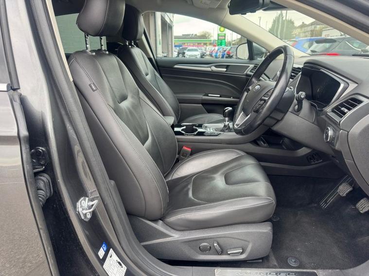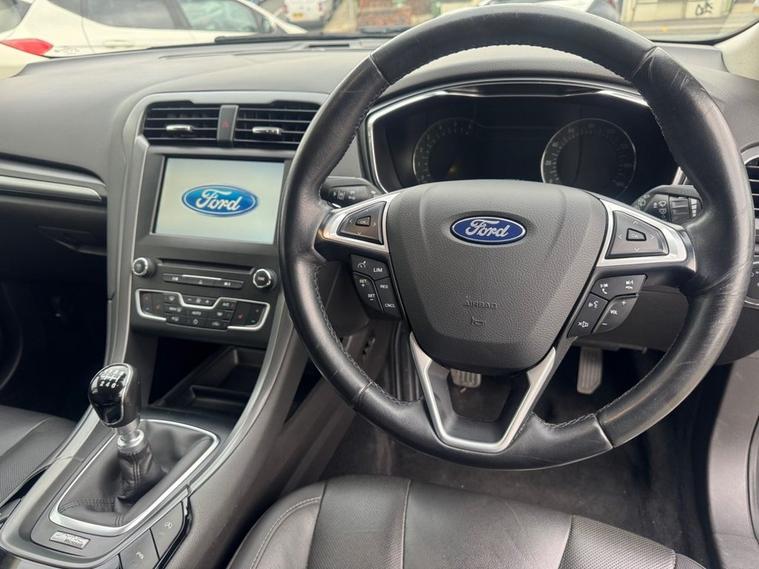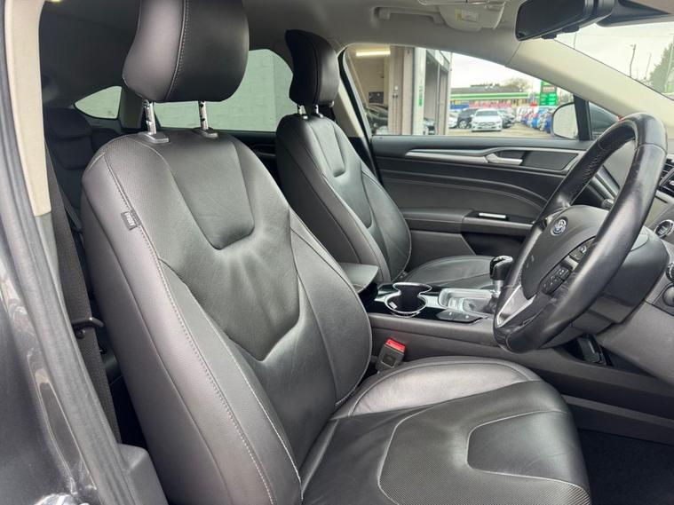 SUPERB EXAMPLE of a Ford Mondeo 2.0 TDCi Titanium in Magnetic grey paint with 18inch 5 spoke alloys. Only 2 owners from new, full Ford service history and cambelt changed/waterpump at 54, 000 miles. Only £35 year road tax banding and over 50 miles per gallon fuel economy. Spec includes upgraded electric tow bar and rear privacy glass. Standard spec includes sat nav, front + parking sensors, cruise control, Bluetooth, power folding wing mirrors, full leather interior, heated front seats, electric front seats with driver memory function, multi-function steering wheel, climate control with A/C and much more. Call 01138032773 or visit dealer's website