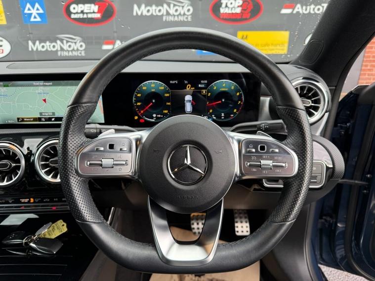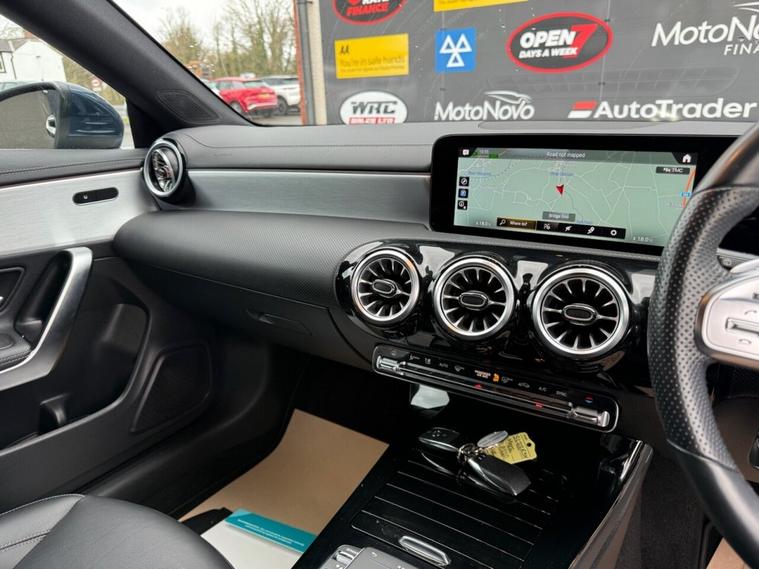 This 2022 Mercedes Benz CLA200 AMG Line Premium 2 offers a blend of style and technology, boasting a 1.3 litre petrol engine and meeting Euro 6 emissions standards. This particular example comes with a 3 month warranty for your peace of mind. Inside, youll find comfort features like heated front seats and the THERMOTRONIC luxury automatic climate control with a two zone display. For your entertainment and connectivity needs, it includes the Mercedes Benz Sound System with 225 Watts and seamless smartphone integration via Apple CarPlay and Android Auto. The AMG Line trim enhances the sporty appeal of this CLA. Navigating tight spaces is made easier with the Parking Package, which includes front and rear sensors along with a rear camera. These features collectively demonstrate how this Mercedes Benz CLA200 AMG Line Premium 2 provides a superior driving experience compared to other vehicles in its class, offering advanced comfort, entertainment, and parking assistance systems.