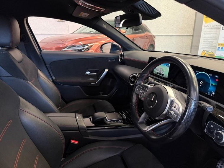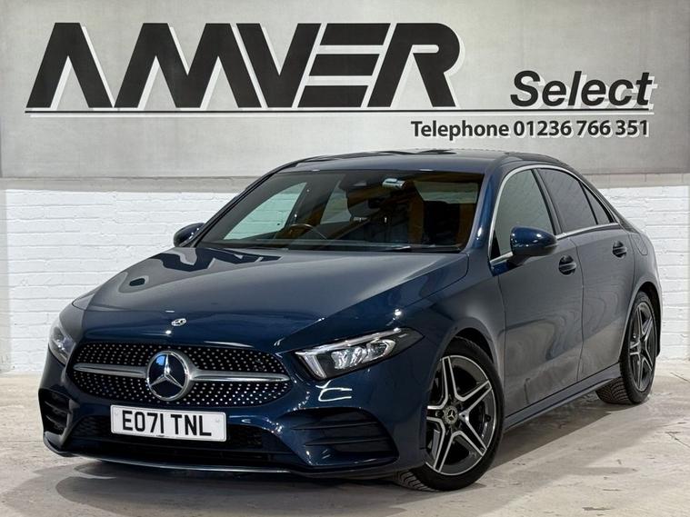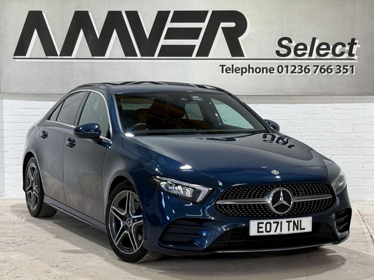 A superb A-Class saloon in Denim Blue metallic trimmed in Black Artico leather with matching Black Dinamica alcantara inserts, Red contrast stitching and Piano Black interior accents. Well equipped 1.3 litre petrol A180 AMG Line automatic model with heated seats, satellite navigation, touchpad controls, reversing camera, DAB radio, Bluetooth, cruise control, a host of driving assistance features including speed limit assist, active lane keep assist, active brake assist and a choice of Sport, Comfort, ECO and Individual driving modes, folding rear seats and more. Very attractive in Denim Blue metallic with dark privacy glass, AMG body styling and 18 inch AMG alloy wheels. 44, 000 miles with three owners from new and good service history recorded on the Mercedes digital system, supplied with complete book pack in Mercedes wallet, two keys and six months Momentum Plan 3 Pro warranty so that you can drive away with total confidence knowing that you are benefiting from what is probably the best warranty cover available in the UK today. Amver Select are proud to have been awarded Auto Traders Highly Rated status for 2025, an honour that we have received every year since its introduction in 2018. In our current premises for nearly two decades, we are conveniently located between Glasgow and Edinburgh and are open from 10:00am to 6:00pm Monday to Friday. We have committed to AA Cars Standards, basically the AAs Commandments of Gold Standard customer service. All cars are provided with a minimum 6 months MOT, 12 months AA basic breakdown cover and other exclusive AA member benefits. Finance available, subject to approval. Part-exchange welcome.
