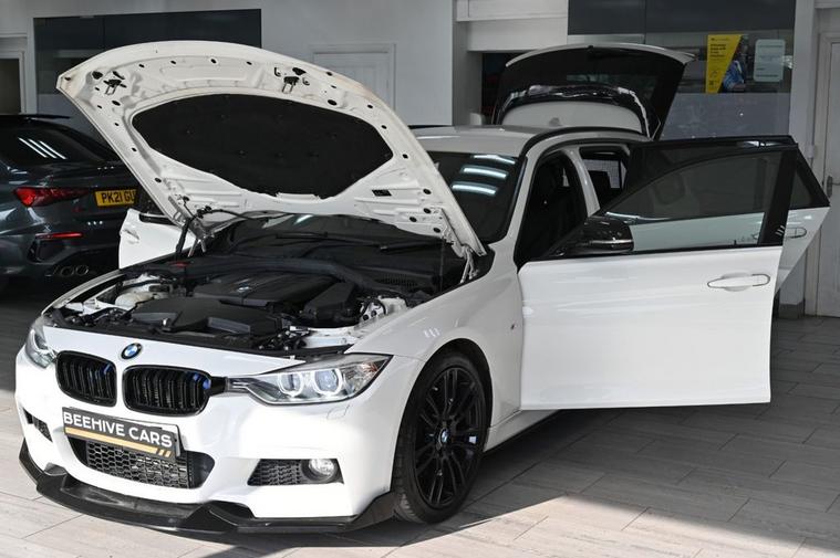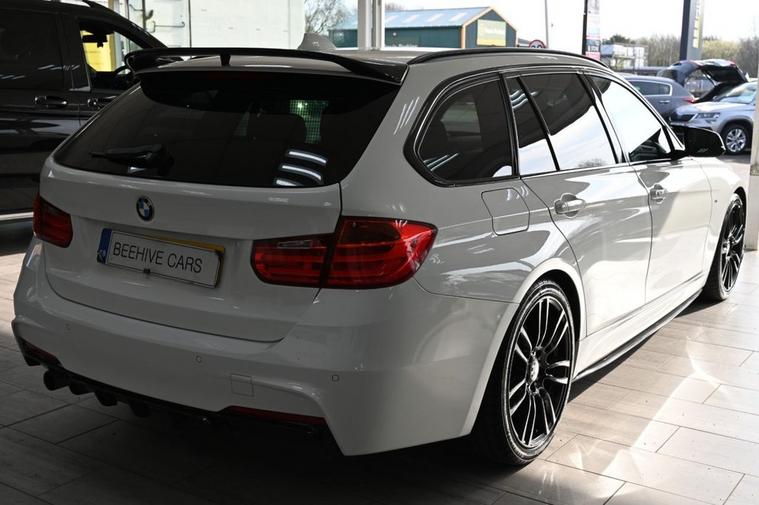 DRIVE AWAY TODAY OR HOME DELIVERY TO YOUR DOORSTEP FINANCE & PART EXCHANGE ARRANGED ONLINE** 7 DAY MONEY BACK GUARANTEE** Nice car Bmw 2.0 320d blue performance m-sport touring automatic in metalic white with service history sat nav cd dab radio bluetooth media usb harman kardon surround sound full leather seats with armrest electric door mirrors rear parking aid sensors xenon lights eco pro comfort sport driving modes push button start stop m-sport steering electric push button tailgate m-sport bodystyling kit alloys privacy