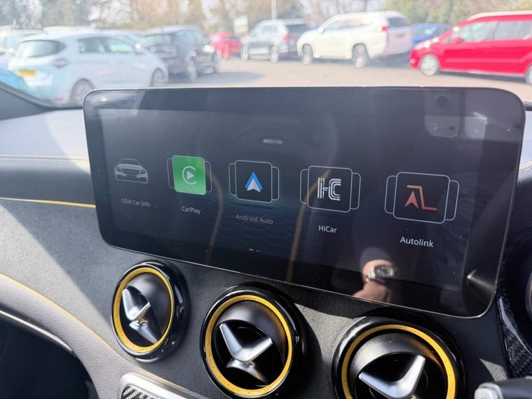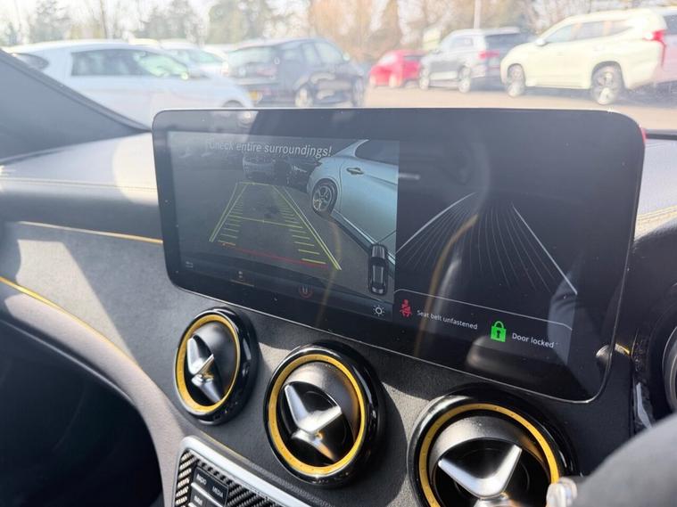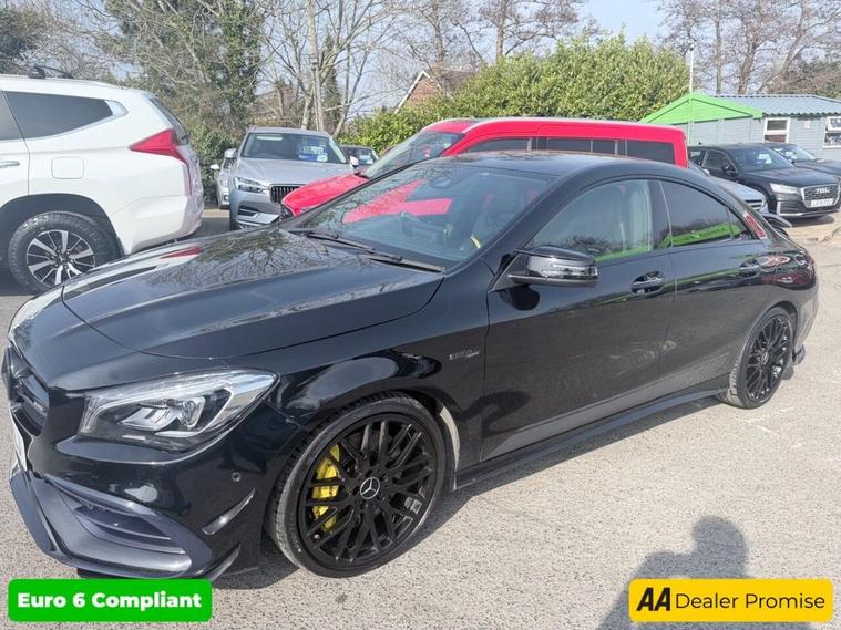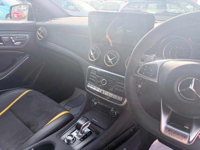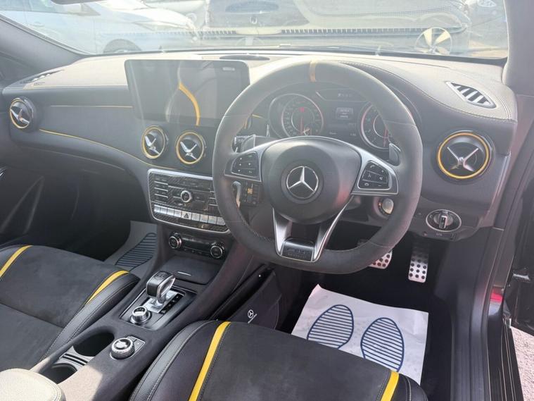 This 2017 Mercedes Benz CLA45 AMG Yellow Night Edition boasts exceptionally low mileage for its age, having covered just 57, 000 miles and a service history at 10K, 24K, 26K, 35K, 40K, 47K. This striking four wheel drive model is powered by a potent 2.0 litre petrol engine and meets Euro 6 emissions standards. It comes with a 3 month warranty for your peace of mind and its MOT is valid until October 2026. Notable features include THERMOTRONIC dual zone luxury automatic climate control, the Audio 20 radio CD system with Bluetooth connectivity, and LED High Performance headlamps with integrated daytime running lights. The car also benefits from Parking Pilot with front and rear sensors, and automatic headlamp activation for convenience in dark conditions. The performance of this CLA45 AMG is truly impressive, with a rapid 0-60mph acceleration time of just 4.2 seconds, demonstrating its superior capability compared to other vehicles in its class. This exceptional acceleration, combined with the advanced technology and premium features, makes this Mercedes Benz a compelling choice for those seeking a dynamic and well equipped driving experience.