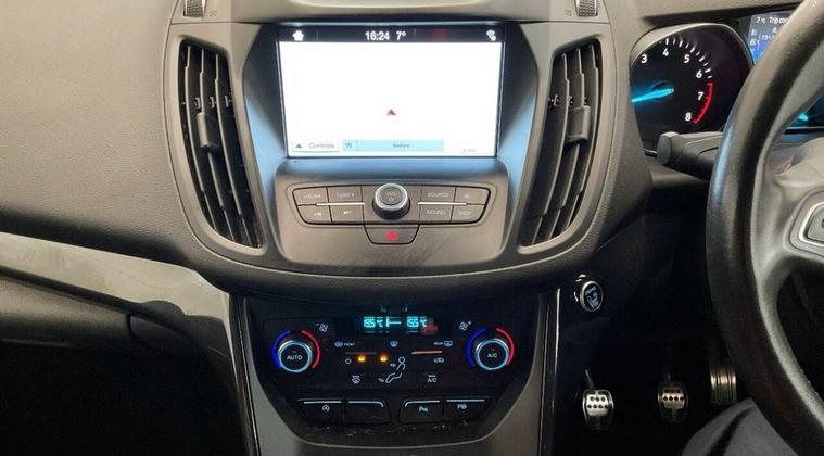This 2017 Ford Kuga1.5 T ST Line is a superb example, Under the bonnet, youll find an efficient 1.5 litre petrol engine that meets Euro 6 emissions standards, offering an impressive fuel economy of up to 45 miles per gallon. The ST Line trim level ensures a sporty aesthetic and comes equipped with a Premium Ford DAB Navigation System featuring Ford SYNC3, which includes Bluetooth connectivity and parking assistance with a rear camera, Apple Car Play/Android Auto, Factory fitted folding towbar, and service history. Further enhancing your driving experience, this Kuga includes a Driver Assistance Pack with Blind Spot Assistance (BLIS) for added safety on the road. Convenience is key with Power Tailgate, alongside Dual Zone Electronic Automatic Temperature Control for personalised comfort. These features, combined with its excellent fuel efficiency and single owner provenance, clearly set this Ford Kuga apart from other vehicles in its class.