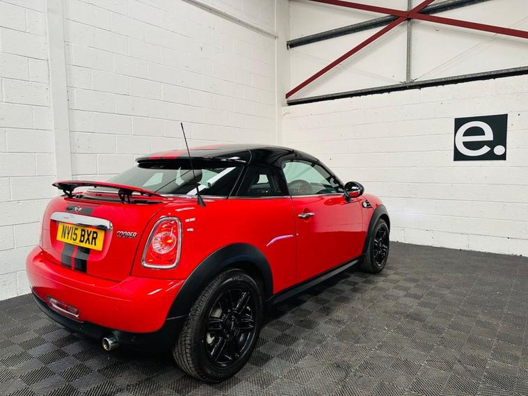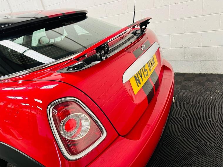 A superb MINI 1.6 Cooper Coupe in Chili Red with Carbon Black Interior Trim which has covered 17k miles. 2015 being one of the last Coupes built and ultra low miles. 2 Owners and Service History.