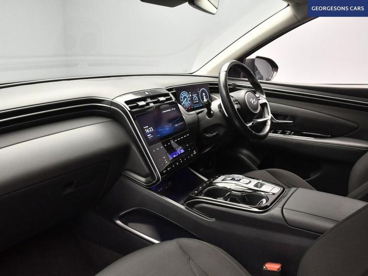 The Hyundai Tucson 1.6 h T-GDi Premium combines a responsive 1.6-litre turbo petrol mild-hybrid engine with 180hp, delivering 0-62mph in 9.4 seconds and up to 44.1mpg in this front-wheel-drive setup with a smooth 7-speed DCT automatic transmission. The top-spec Premium trim offers luxury features with 1a spacious, well-equipped interior for versatile family SUV driving. With one owner, this Tucson is in excellent condition. Navigate effortlessly with integrated satellite navigation, Apple CarPlay, Bluetooth and DAB radio, ensuring seamless connectivity on every journey. Parking is a breeze thanks to the reverse camera and parking sensors, providing clear visibility and confidence in tight spaces. Stay comfortable with dual-zone climate control, heated front seats, heated steering wheel and heated windscreen, offering personalised warmth year-round. Adaptive cruise control with speed limiter and blind spot assist enhance safety and relaxation on highways. The spacious five-door SUV design includes a 620-litre boot for practicality.