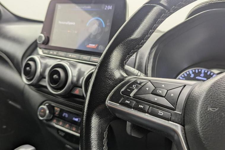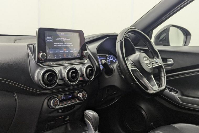 Henson Car Store presents the NISSAN JUKE 1.0 DIG-T Tekna SUV 5dr Petrol DCT Auto Euro 6 (s/s) finished in Black, this car comes with service history. This 2022 Nissan Juke DIG-T Tekna offers a sophisticated driving experience with its advanced ProPILOT system, which includes adaptive cruise control for effortless journeys. This Euro 6 compliant model is powered by an efficient 1.0 litre petrol engine, ensuring a balance of performance and economy. The Tekna trim level comes equipped with striking LED headlights for enhanced visibility and a rear parking camera to assist with manoeuvring. Connectivity is well catered for with Bluetooth, USB, Aux, and a 12V socket, while both front and rear seats are heated for comfort in all conditions. The inclusion of ProPILOT technology sets this Juke apart, providing intelligent assistance that simplifies driving, especially on longer trips. The LED headlights not only improve illumination but also contribute to the vehicles modern aesthetic. Furthermore, the rear parking camera offers added convenience and safety when parking. These features, combined with the comfortable heated seats and comprehensive connectivity options, demonstrate the thoughtful design and advanced technology present in this Nissan Juke, making it a compelling choice for discerning drivers. Stock Number 353