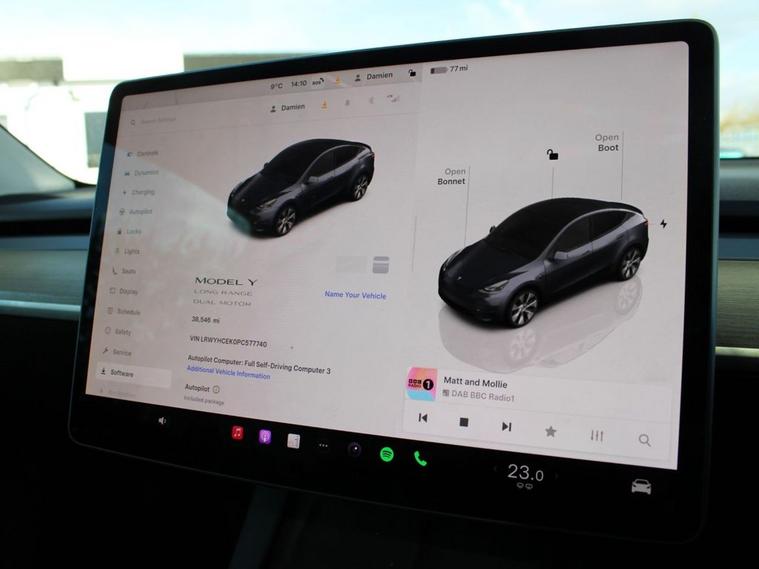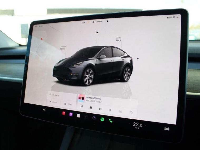 **93.7% BATTERY HEALTH** This 2022 Tesla Model Y Long Range presents a unique opportunity, having had only one owner since new. This electric vehicle boasts a Four Wheel Drive drivetrain and an 85 kWh battery, offering a maximum range of 331 miles when new. Inside, youll find a host of notable features designed for comfort and convenience, including music and media playback via Bluetooth, an expansive glass roof with ultraviolet and infrared protection, dual zone climate control, a heated steering wheel, and LED headlights. The highlights of this Model Y Long Range demonstrate its superior capabilities compared to other vehicles in its class. Its impressive acceleration allows it to go from 0 to 60 miles per hour in just 4.8 seconds. For home charging, a full charge from empty takes approximately 12 hours using a 7kW charger, while rapid public charging can take you from empty to 80% in as little as 25 minutes. Furthermore, the generous boot space provides ample room for all your needs, making this a practical and high performing electric car.