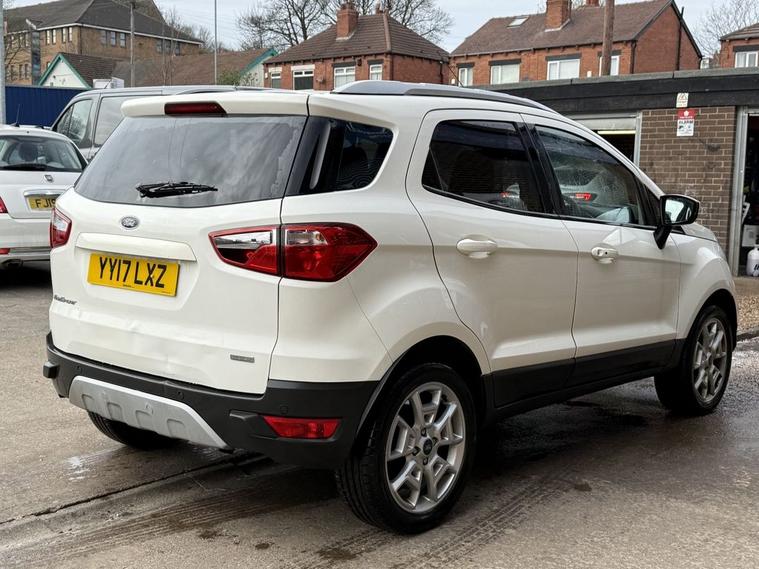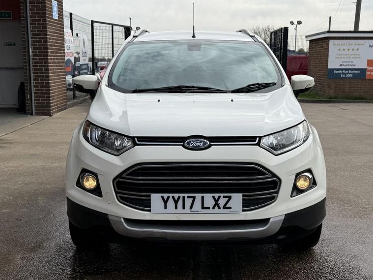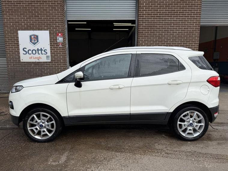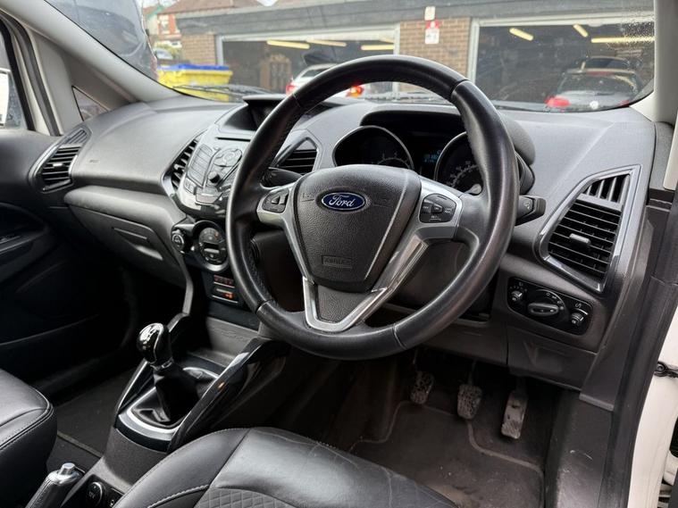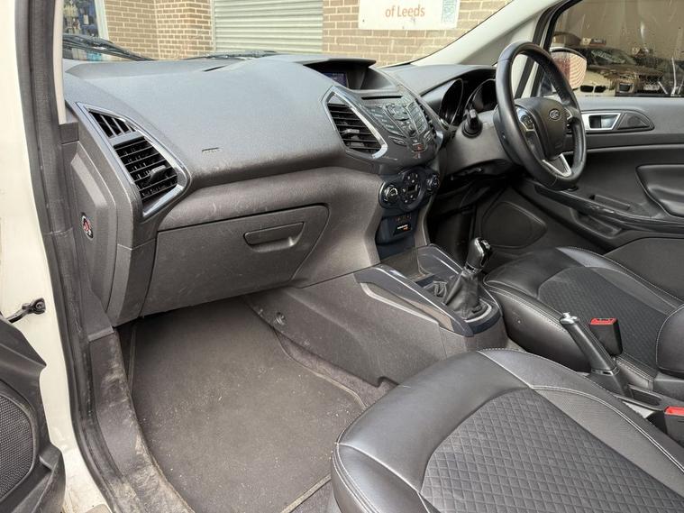 Scotts of Leeds used Car Sales are pleased to offer this FORD ECOSPORT 1.0T EcoBoost Titanium SUV 5 Door Petrol Manual in White. The car is in good condition throughout, in the best colour combination and a great specification including Heated part leather seats, Bluetooth, Cruise control, Parking sensors, Automatic lights, USB point, Aux point, Voice command, Electric windows, CD player, Isofix, Alloy wheels and much much more. The car will be supplied with an up to date service record having just been serviced in our Workshop, Wet timing belt done, new turbo, an MOT until March 2027 and 2 Keys ready to drive away. 3 MONTH NATIONWIDE WARRANTY provided with all vehicles. NATIONWIDE DELIVERY also available. A guaranteed 12 Months MOT can be added for an extra £100. DISCLAIMER: The above specification is true and correct. Any other specification listed elsewhere can sometimes be incorrect. Please check with Sales Executive to clarify this if needed prior to purchase.