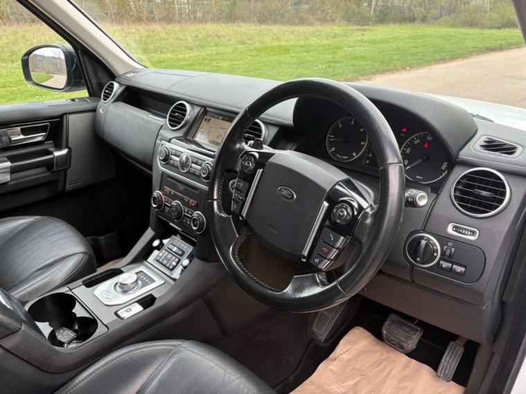 2014 discovery 4 3.0 SDV6 hse 8 speed auto in Fuji white with full black leather and piano black trims the seats are both electrically movable and heated , heated screen , Bluetooth, reverse camera , 7 seater, sat nav, dab radio , keyless entry , rear entertainment , panoramic roof , 20 alloys , extended roof rails , low tax bracket , service history and cambelt replacement