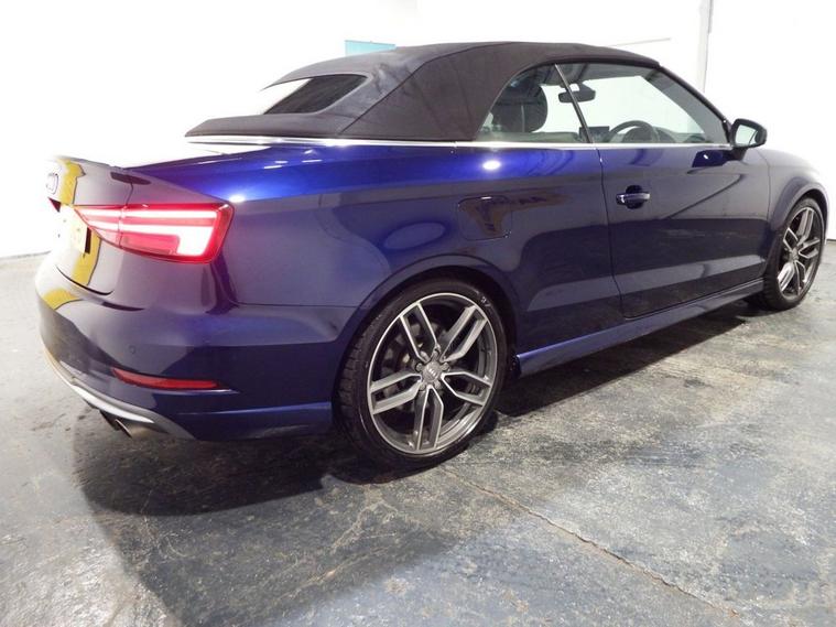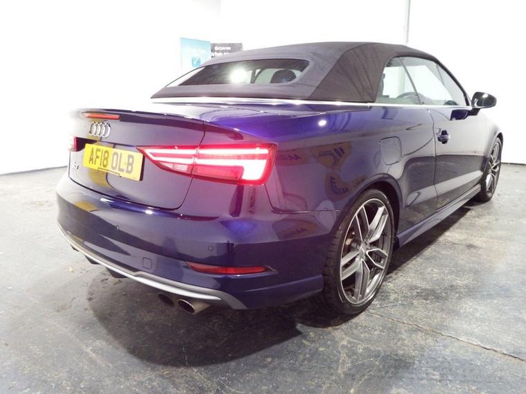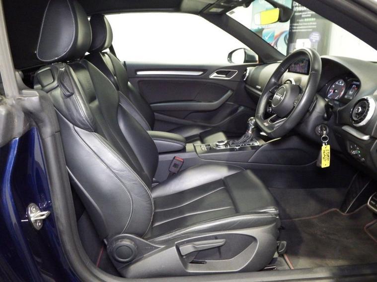 This 2018 Audi S3 2.0 TFSI Cabriolet 2dr S Tronic Auto Quattro 310 bhp boasts exceptionally low mileage for its age, having covered just 41166 miles. This impressive example of the S3 model is equipped with a powerful 2.0 litre petrol engine and a four wheel drive drivetrain, ensuring excellent performance and handling. It meets Euro 6 emission standards, and it includes a Bluetooth interface for seamless connectivity. Further enhancing its appeal are the striking LED headlights with dynamic rear indicators, and heated leather sports front seats for added comfort. Experience exhilarating performance with this Audi S3, capable of accelerating from 0 to 60 miles per hour in a swift 5.1 seconds. This performance, combined with a fuel economy of up to 42 miles per gallon, demonstrates its efficiency. The vehicle also offers generous boot space, making it practical for everyday use and longer journeys. A wind deflector is also included, adding to the driving experience.