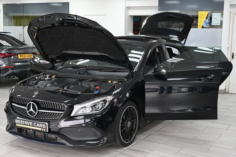 DRIVE AWAY TODAY OR HOME DELIVERY TO YOUR DOORSTEP FINANCE & PART EXCHANGE ARRANGED ONLINE** 7 DAY MONEY BACK GUARANTEE** Lovely car Mercedes Cla220d amg line shooting brake in metallic black with service history sat nav cd radio bluetooth media usb panoramic glass roof half leather seats with armrest electric folding door mirrors front and rear parking aid sensors xenon lights flat bottom steering wheel with f1 style paddleshifts eco comfort sport individual dynamic driving mode alloys privacy