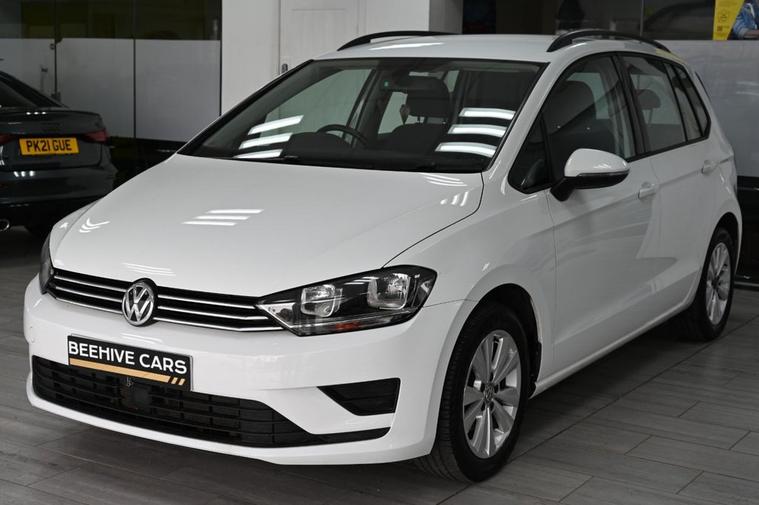 DRIVE AWAY TODAY OR HOME DELIVERY ANYWHERE IN MAINLAND UK FINANCE & PART EXCHANGE ARRANGED ONLINE **7 DAY MONEY BACK GUARANTEE** Nice car and drive Volkswagen Golf Sv 1.6 tdi bluemotion technology se dsg automatic in metallc white with full service history £20 road tax 70 mpg average vw touchscreen sound system dab radio media bluetooth usb aux cloth seats with armrest heated seats electric heated door mirrors rear parking aid sensors eco normal sport individual driving modes flat bottom steering wheel alloys
